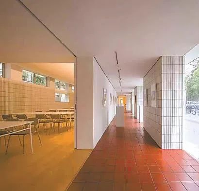 设计师将一条宽2.4米的长廊(铺设红色地砖处)设置于室内,串起空间内外不同的区域和功能。