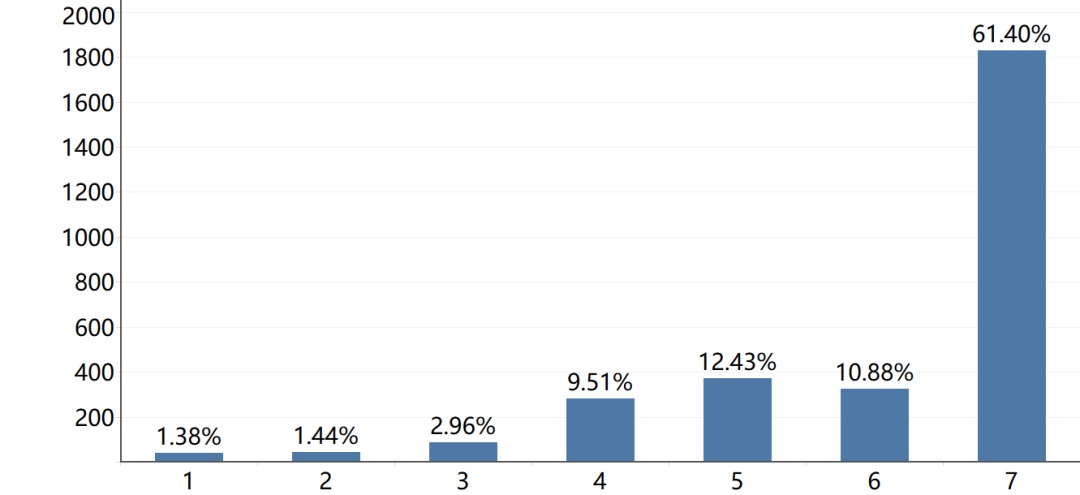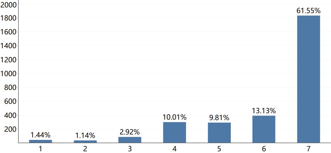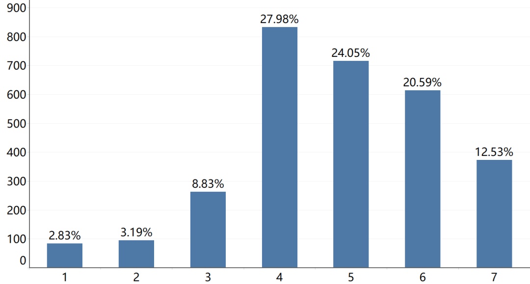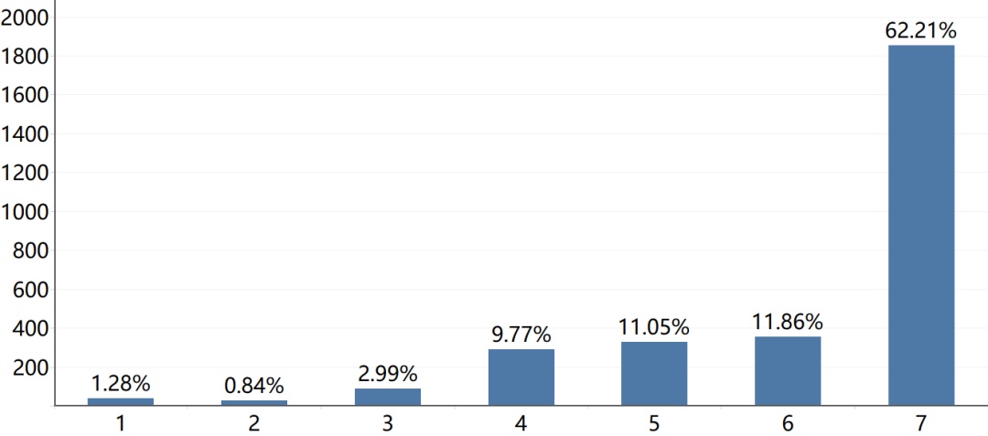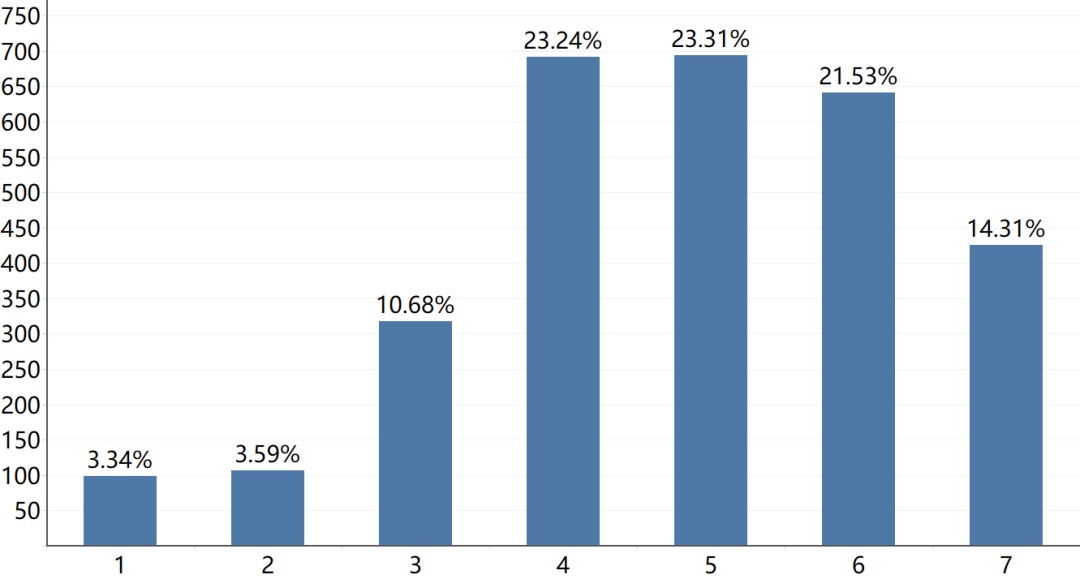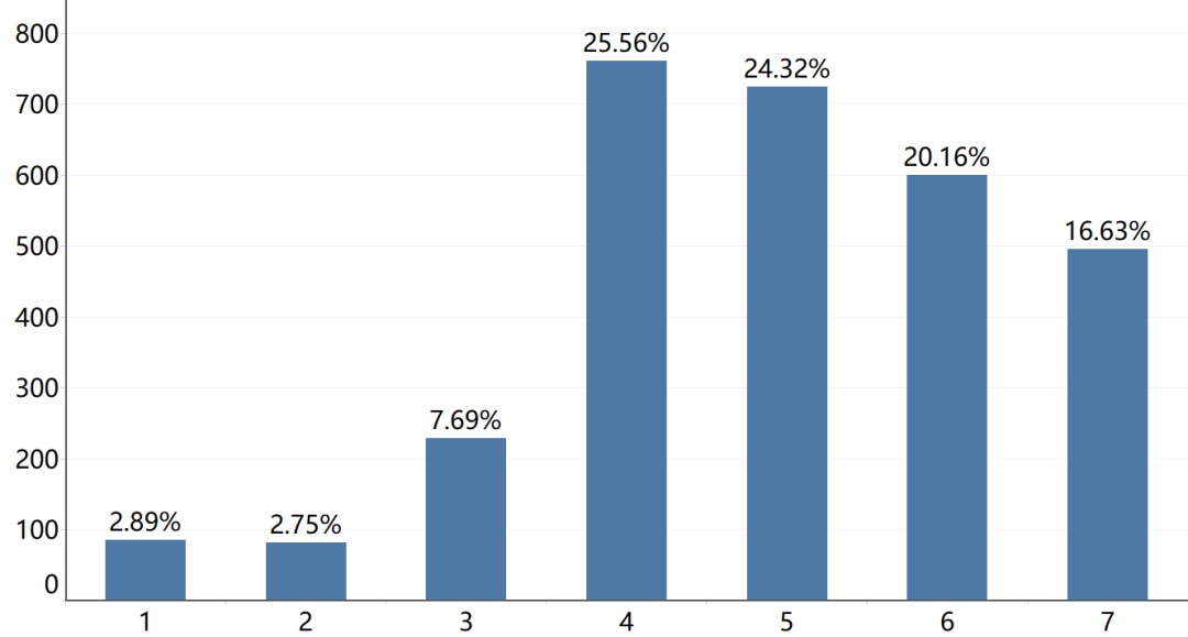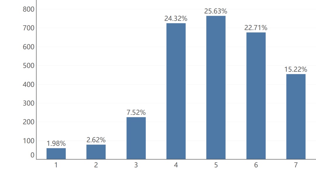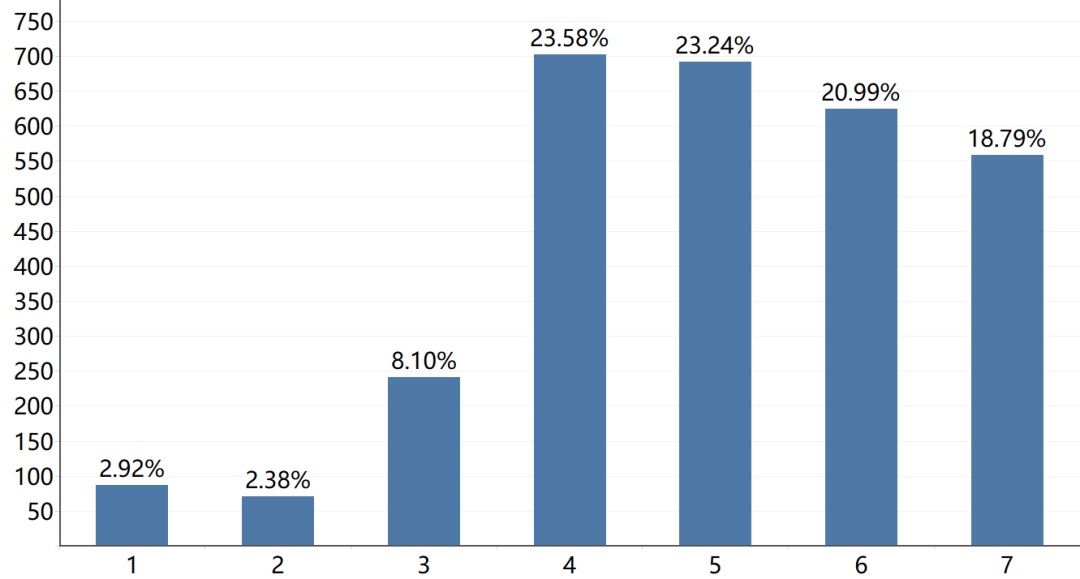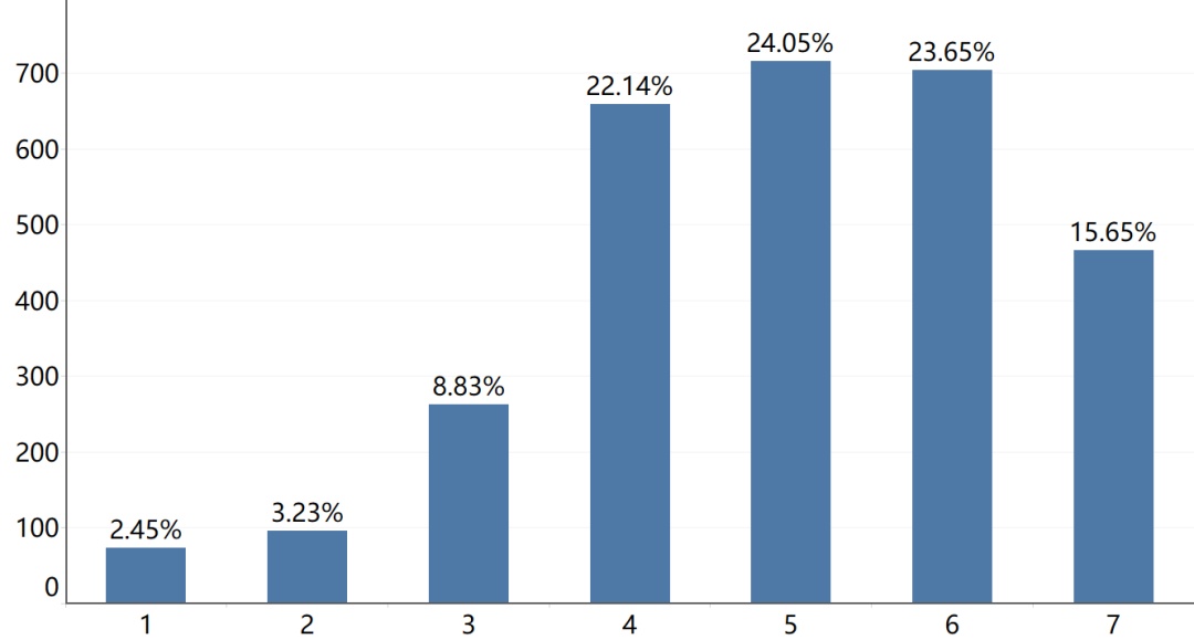 调查显示,63.56%的受访者对上海市消费服务效率感到满意(5分及以上);24.32%的受访者对消费服务效率感到基本满意(4分);12.12%的受访者对消费服务效率感到一般(3分及以下)。