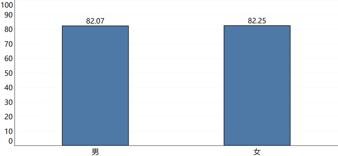 对上海市不同性别的消费者满意度指数得分进行统计。其中,女性得分为82.25分,男性得分82.07分。不同性别消费者的满意度得分差异为0.18分。