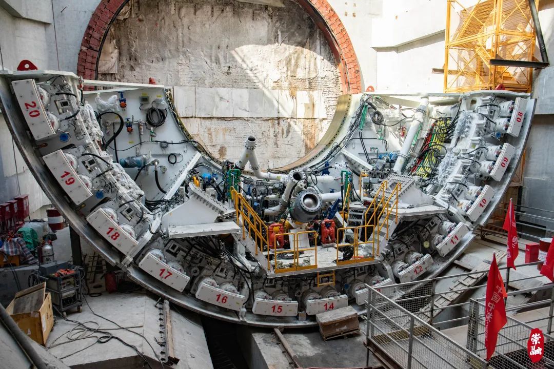 “领航号”盾构机在杭州正式下线后,被拆解运送至崇明,重新进行组装。以盾构主机盾体为例,重新组装时先用专业仪器定位,确定底块也就是盾体拼装的第一块部件位置,而后再逐一像积木拼搭一样由底部向顶部,直至搭建完成圆形主机,过程中需要专业仪器定位,每一步都要经过精准斟测,确保盾构机符合最终设计要求。目前,被拆解成10大块的盾构主机其中5块已经完成拼装,接下来将进行主轴承及剩余部分的拼装工作。相关负责人告诉记者,“领航号”盾构机预计4月初刀盘吊装下井,4月中下旬始发。