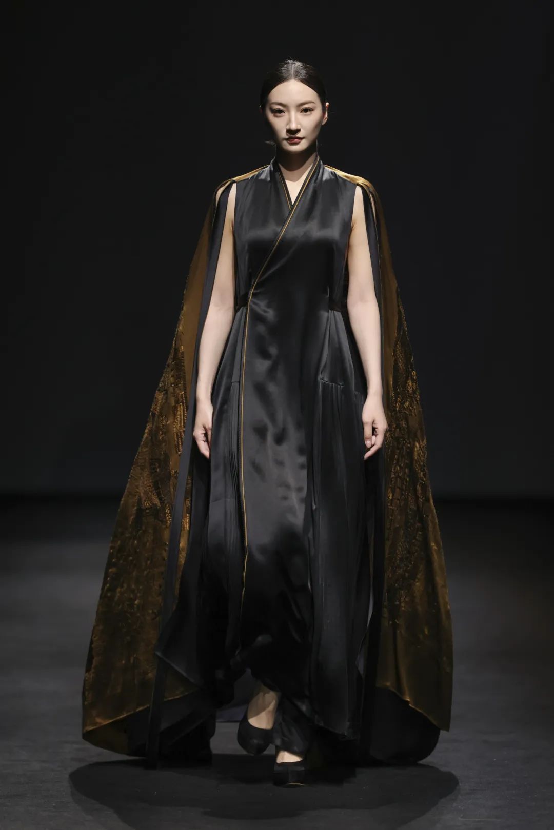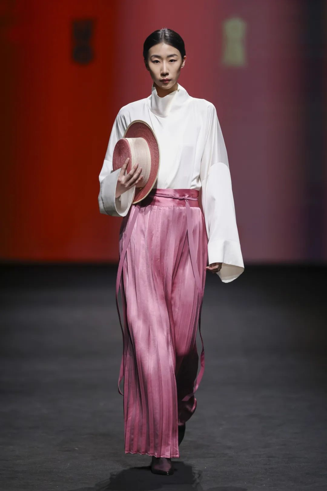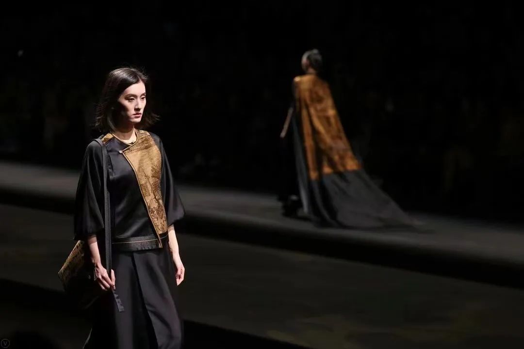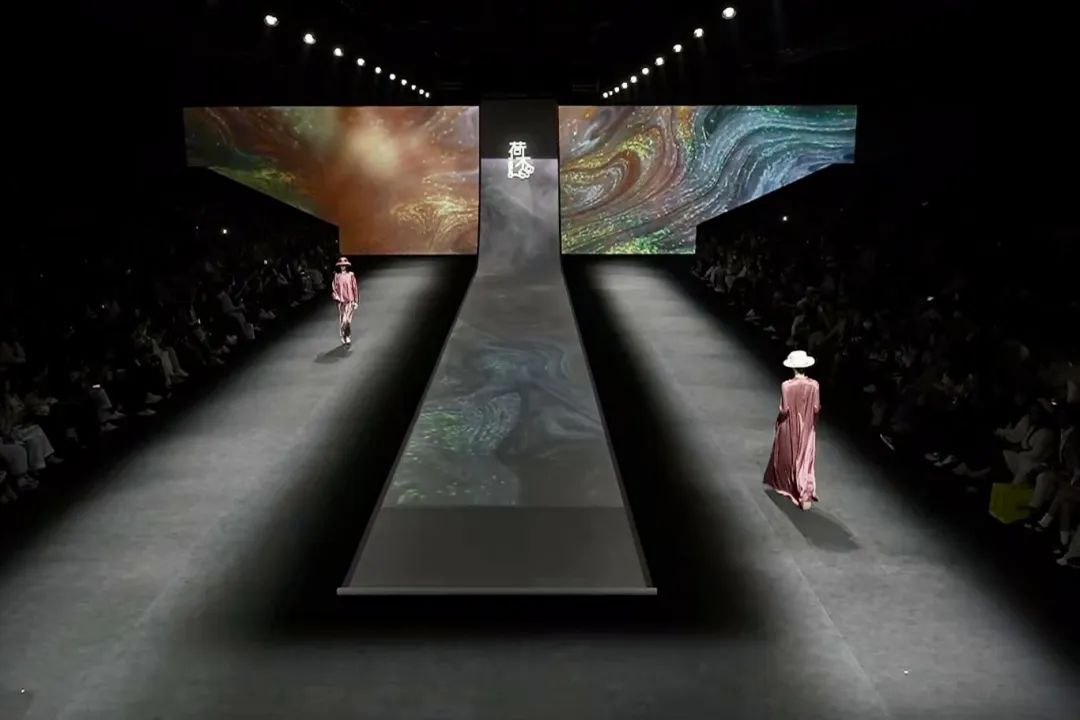 光与影的梦幻交织间,律动的音乐节拍渐起,模特身着各色的极简风格服饰悉数亮相,仿佛从大宋穿越而来,跨越岁月长河打开时尚新篇章。光影画面随着模特服饰色彩变幻,或绚烂或沉静,让在场观众深感震撼。