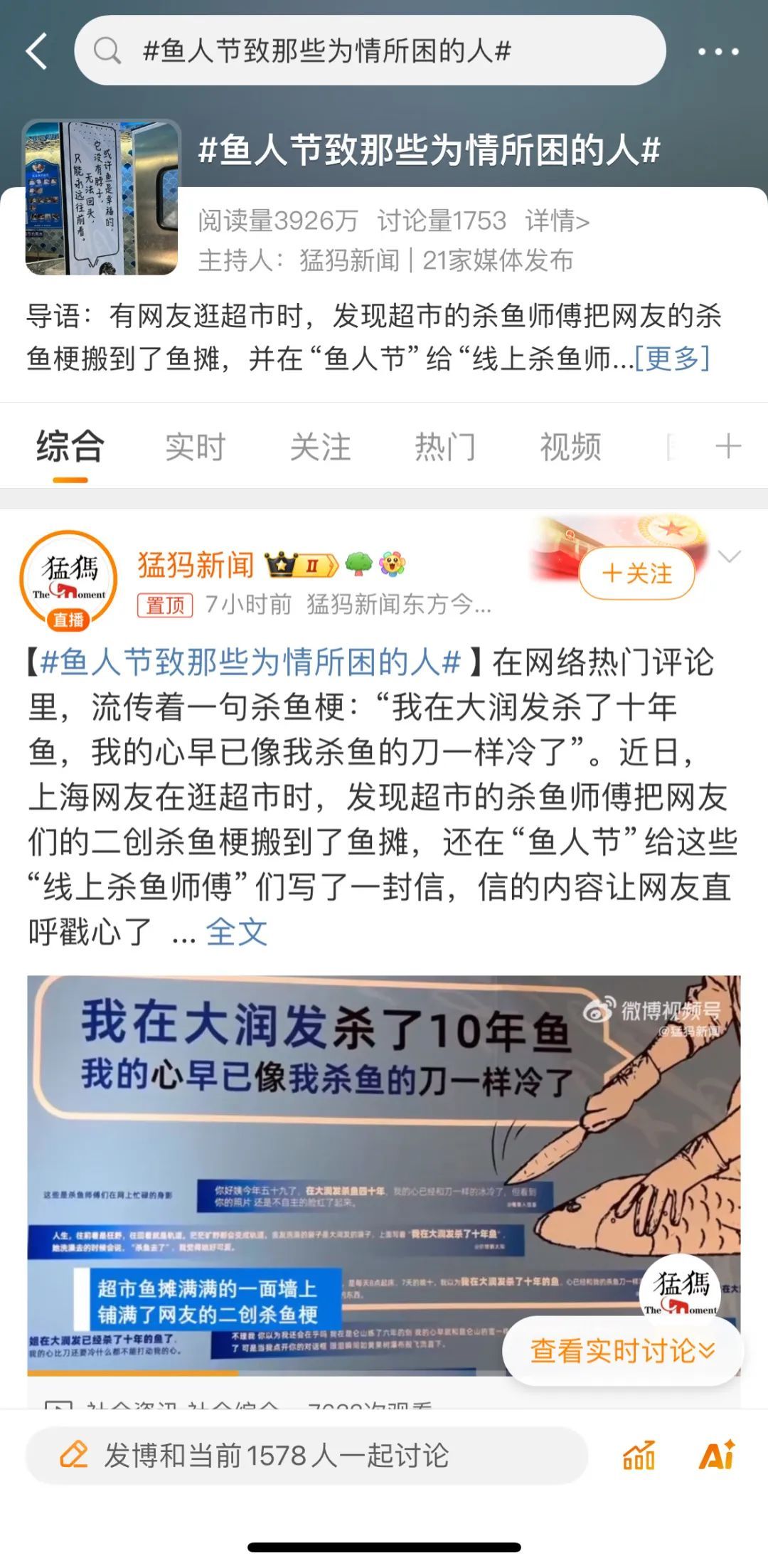 原来,4月1日,大润发商超举办了首届“鱼”人节。其中,“杀鱼”师傅们二创的网络“杀鱼”热梗,集体回信,更是与市民、网友梦幻联动。