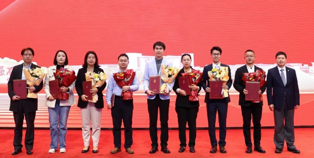 刘昌胜为2024年“伟长学者”颁发证书,优秀学生代表为他们献花。