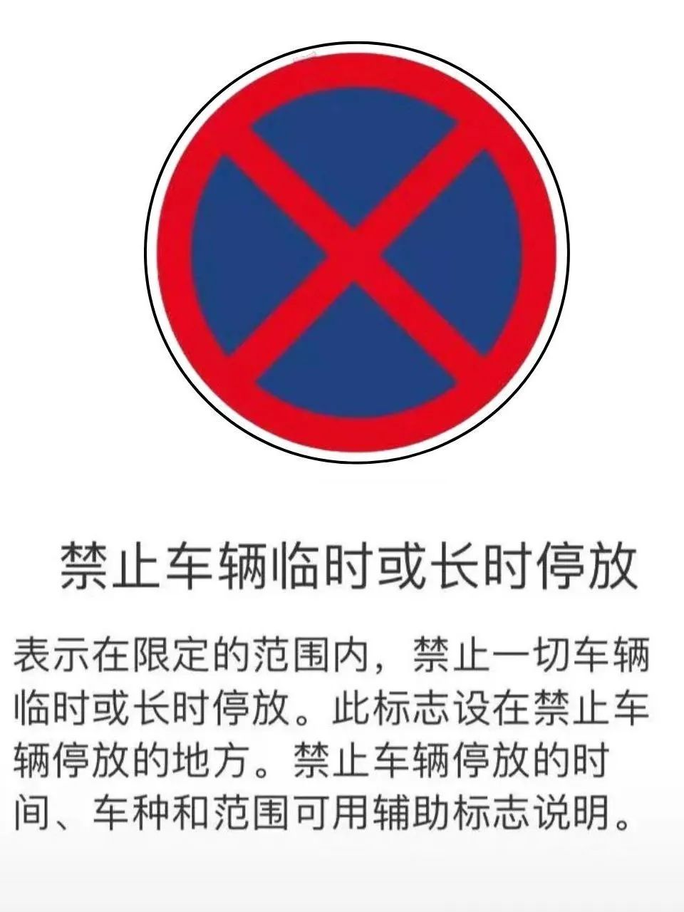 禁停标志:是一个红圈内蓝底红叉的图案。