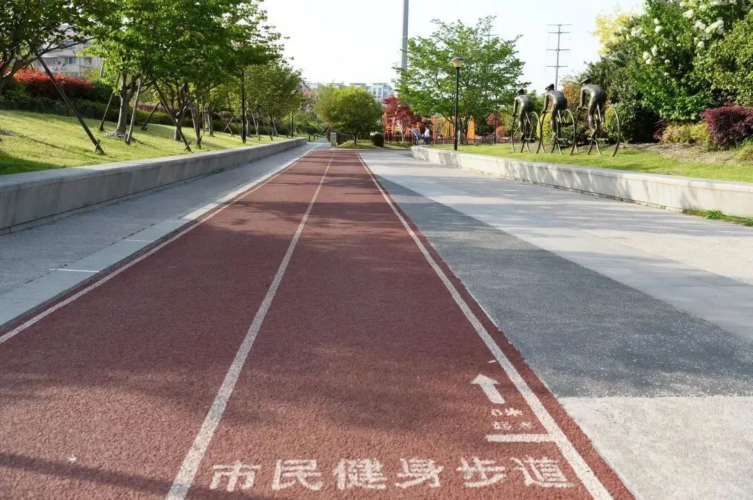静安区绿化部门在建设静安青年体育公园时,考虑到公园地理位置紧邻已建成的彭越浦河西侧绿道,便将园内步道与滨河绿道打通,多增加了0.79公里绿道,并通过植物种植弱化滨河绿道与公园边界的高差。