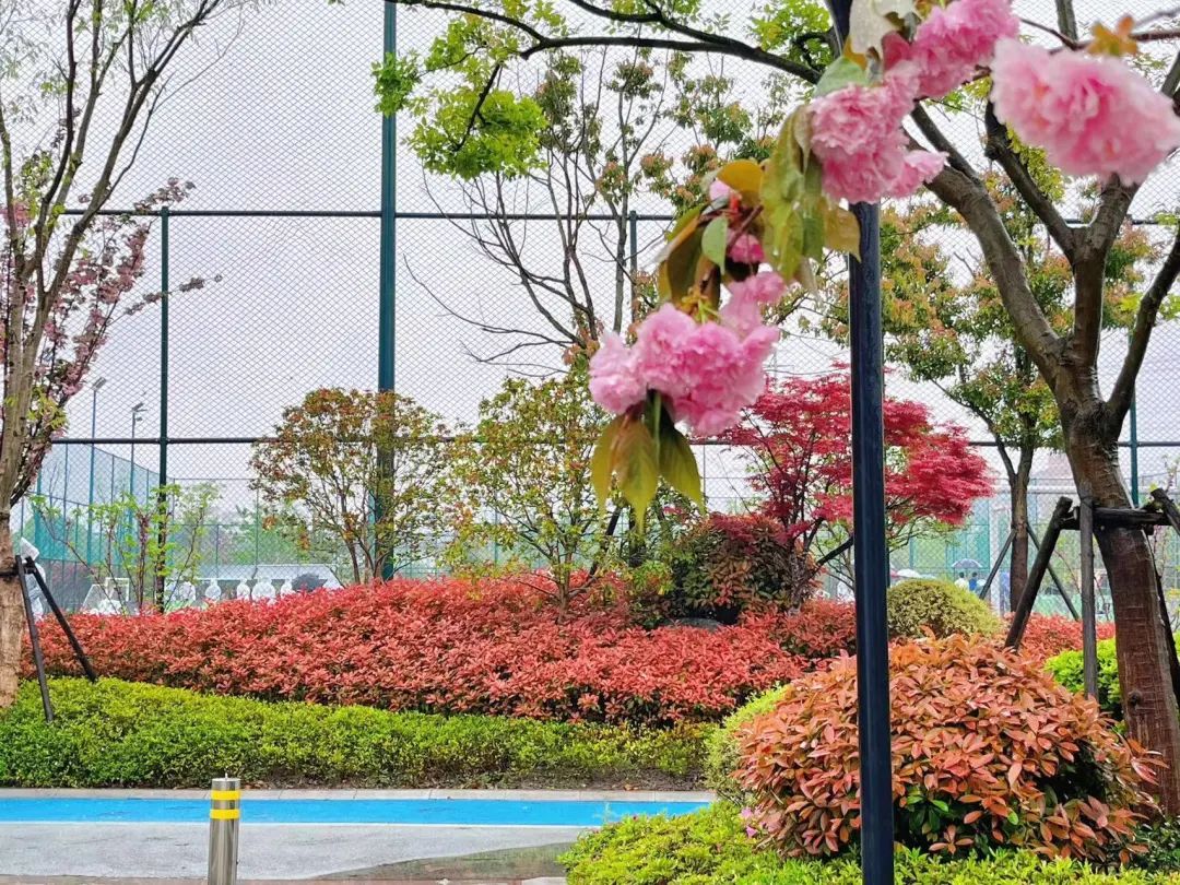 被绿化环绕的体育公园,眼下的春天有樱花盛开,等到秋天又有枫树、无患子等色叶树层林尽染。