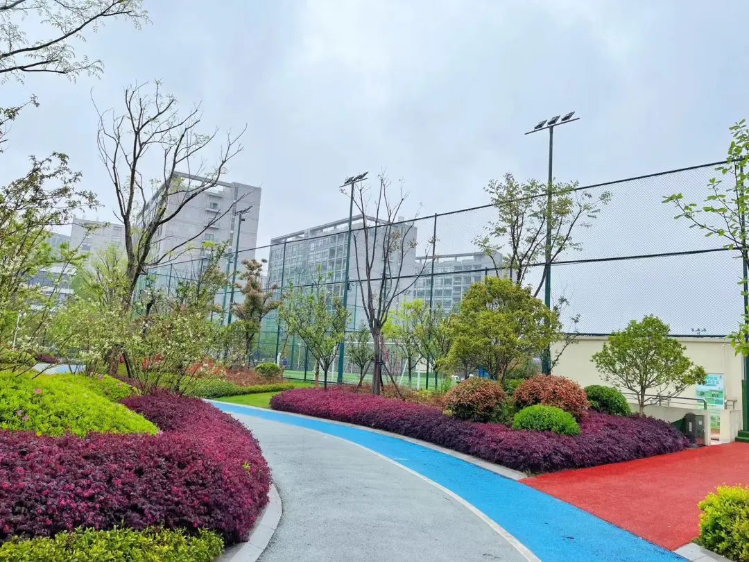 绿地内还设有儿童乐园和健身区域,周边各年龄段的居民在家门口即可享受在公园里锻炼身体、运动健身、休闲放松的体验。一花一世界,闲看花谢花开,在这里,公园城市“全域公园、无界融合”的理念被展现得淋漓尽致。