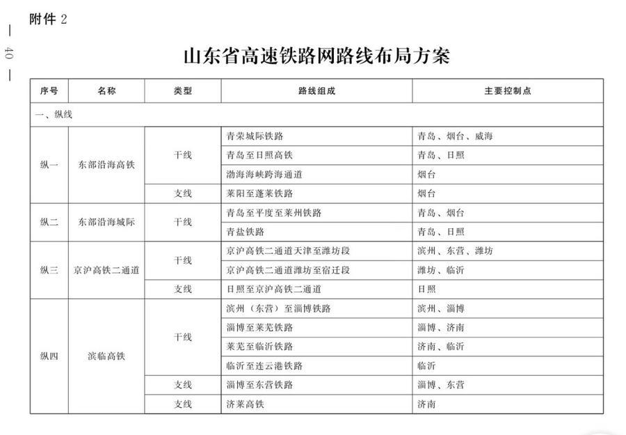 在2023年11 月印发的《山东省综合立体交通网规划纲要(2023—2035年)》当中,鲁中高铁属于“八纵六横”的横四,干线包括“东中西三段”:青岛至京沪高铁二通道联络线、京沪高铁二通道至泰安至聊城铁路、聊城至邯郸铁路。