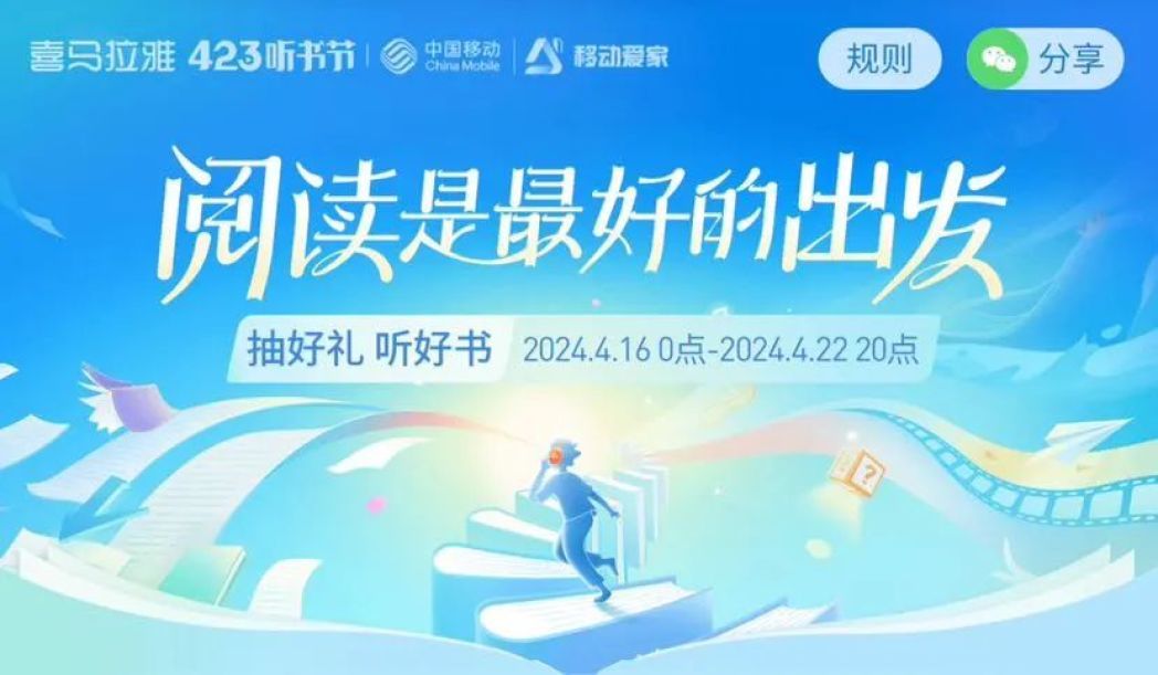 为迎接世界读书日的到来,喜马拉雅第七届423听书节近日正式启动,活动将持续到4月29日,其中,4月16日-4月22日为预热期,4月23日-4月29日为正式期。本次423听书节以“阅读是最好的出发”为主题,号召用户通过读书重启希望、与更好的自己相遇。同时,喜马拉雅还推出了重磅书籍、优惠以及趣味活动等,用户在畅游书海的同时也能感受到高性价比的乐趣。