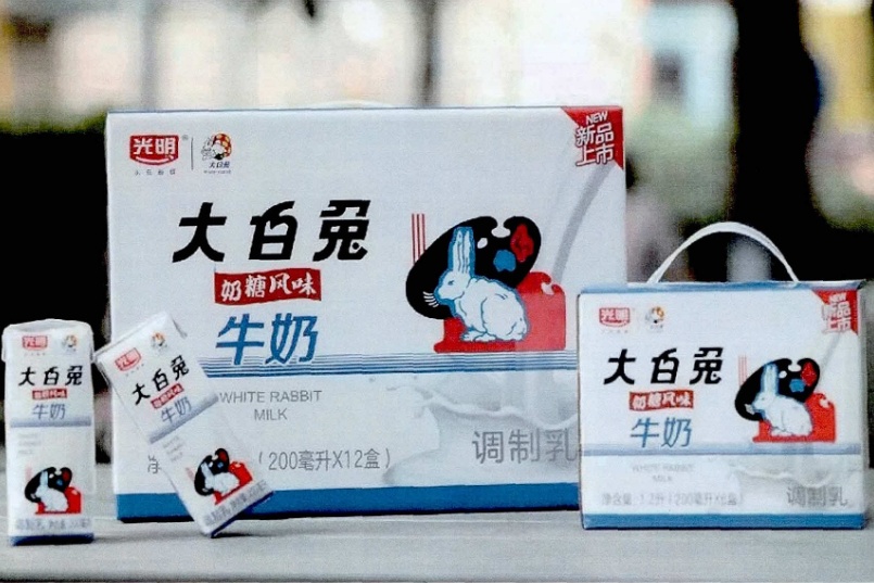 原告某乳业股份有限公司(以下简称g公司)是拥有百年历史的乳制品生产企业,其与“大白兔”品牌的权利人某食品有限公司(以下简称s公司)于2019年7月联合推出“大白兔奶糖风味牛奶”,该饮品包装使用“大白兔”奶糖糖纸经典的红蓝白配色,还印有第757086号注册商标,该商标核定使用商品为第29类,包括牛奶、牛奶制品、牛奶饮料(以牛奶为主的)等。