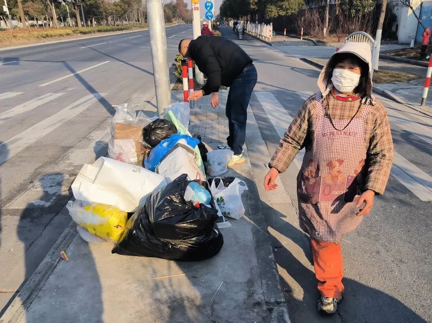 近日,宝山区顾村镇综合行政执法队接某村委来电投诉,反映潘泾路有单位乱倒生活垃圾,执法人员迅速抵达现场,发现生活垃圾随意堆放气味难闻。调查中,执法人员仔细翻找每一袋垃圾追寻线索。其中一只快递袋清晰地印着潘泾路某号门卫室的收货地址,还有一根被遗弃的打包带上印有“某某食品”字样,线索均指向潘泾路某公司。城管执法人员来到该公司并约谈负责人,告知其公司行为违反了《城市生活垃圾管理办法》。