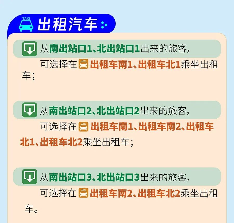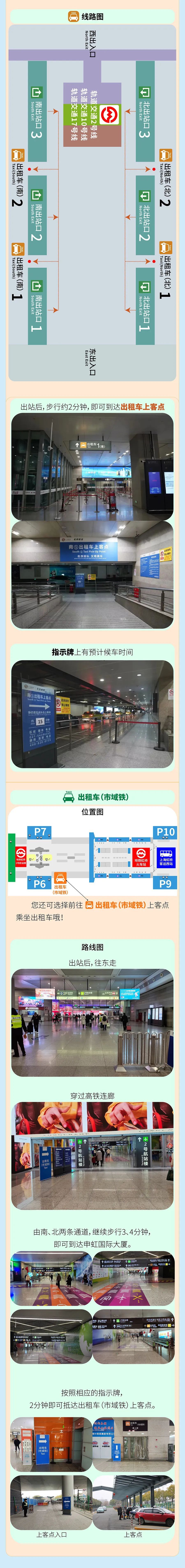 小tips:建议目的地往南面方向(如七宝、莘庄等)的可选南出租车上客点,往北面方向(江桥、南翔等)的可选北出租车上客点。