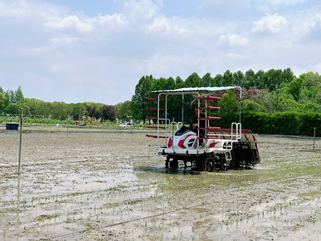 随后,一场颇具趣味性的“人机大战”将现场气氛推向高潮。“小农人”们要跟现代化插秧机一比高下,看看谁的秧插得又快又好。孩子们全身心地投入比赛,拼劲十足。另一侧的水田里,农机手娴熟操作,一台高速乘坐式插秧机在田间奔跑起来,随即栽下一排排整齐的秧苗。虽然不敌机器,但孩子们仍雀跃不已。“这个活动既有趣又有意义,可以让孩子们感受传统农业和现代科技的碰撞。”家长周先生表示。