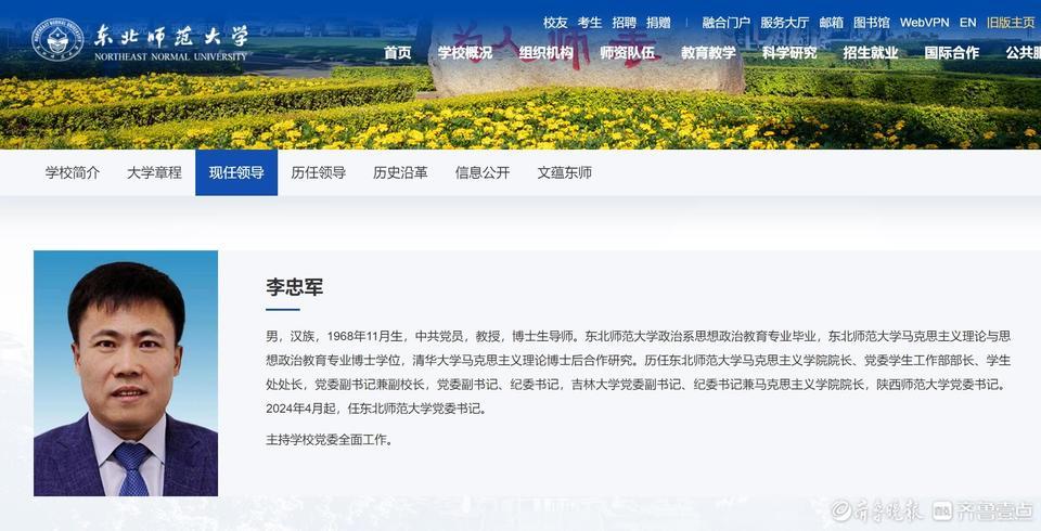 5月6日,教育部人事司在东北师范大学宣布了教育部党组的任免决定,李忠军同志任东北师范大学党委书记。教育部人事司主要负责同志出席会议并讲话。吉林省委组织部、教育工委有关负责同志出席会议。