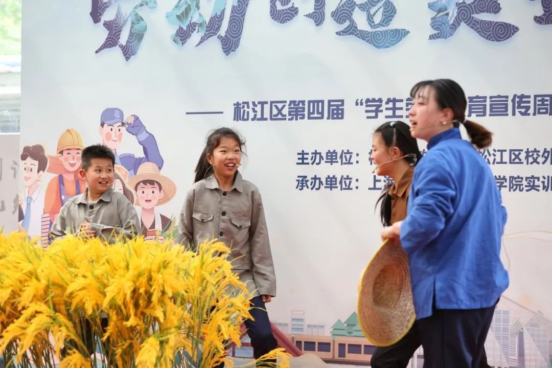 活动现场开展了松江区学校劳动教育成果展,学生劳动教育微课程展示和劳动实践活动,进行艾草香包制作体验。仪式上,松教院附校学生演绎歌曲《劳动最光荣》,上戏附校带来原创情景剧《老来青》,学生们用多样的方式体悟劳动光荣的美好意义。