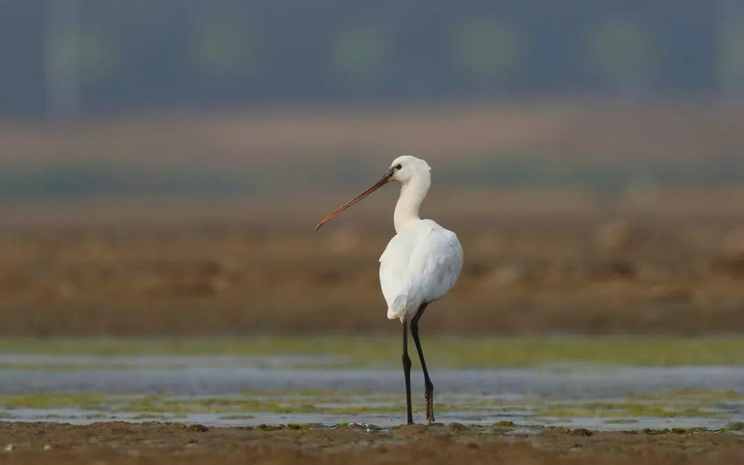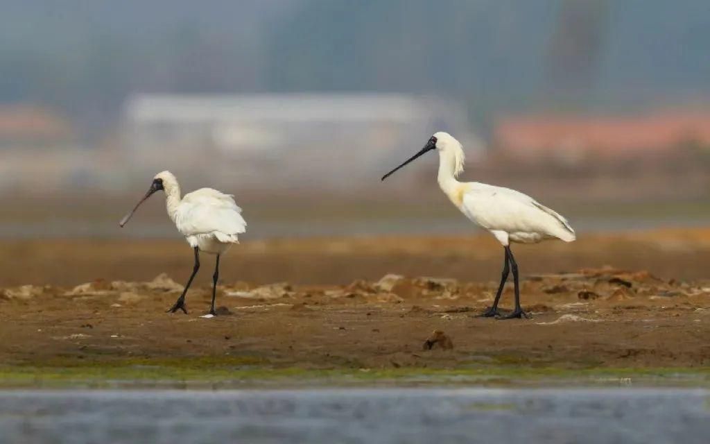 黑脸琵鹭因扁平如汤匙状的长嘴,与中国乐器琵琶极为相似而得名。其姿态优雅,全身羽毛白色,额、喉、脸和眼周全为黑色,被称为“黑面舞者”。黑脸琵鹭还有“鸟中大熊猫”的美誉,是全球濒危珍稀鸟类,国家一级保护野生动物。白琵鹭为国家二级保护动物。