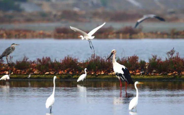 南海新区持续加强生态建设,加大湿地和海岸带生态修复与保护,越来越多的候鸟来到这里,鸟类“朋友圈”不断扩容。据不完全统计,南海新区有300余种鸟类,包括东方白鹳、中华秋沙鸭、天鹅、丹顶鹤、鸳鸯等国家一级、二级保护动物,还有黑嘴鸥、震旦鸦雀、黄胸鹀、红颈苇鹀等濒危、近危鸟类,湿地鸟类资源极为丰富。