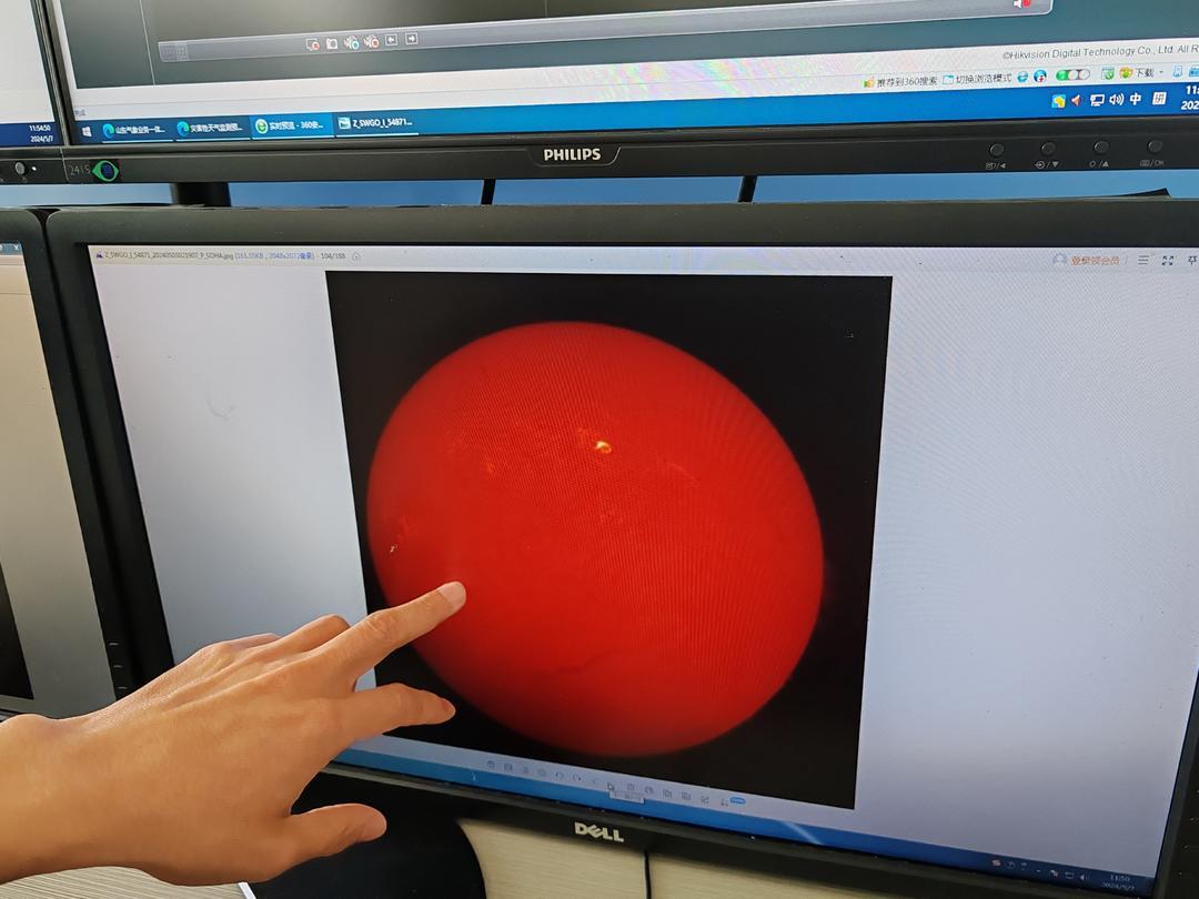 电脑屏幕上,密密麻麻的太阳图片以红黄两色间隔排列。“红色的是太阳色球层的图片,黄色的是太阳光球层的图片。望远镜每180秒自动拍摄一组,之后便自动发送至国家空间天气监测预警中心,为空间天气预报提供依据。”林修栋解释,“凡是肉眼可以看到太阳的天气,我们都要开机观测。比如当下季节,我们一般是8点开机,18点左右关机。”