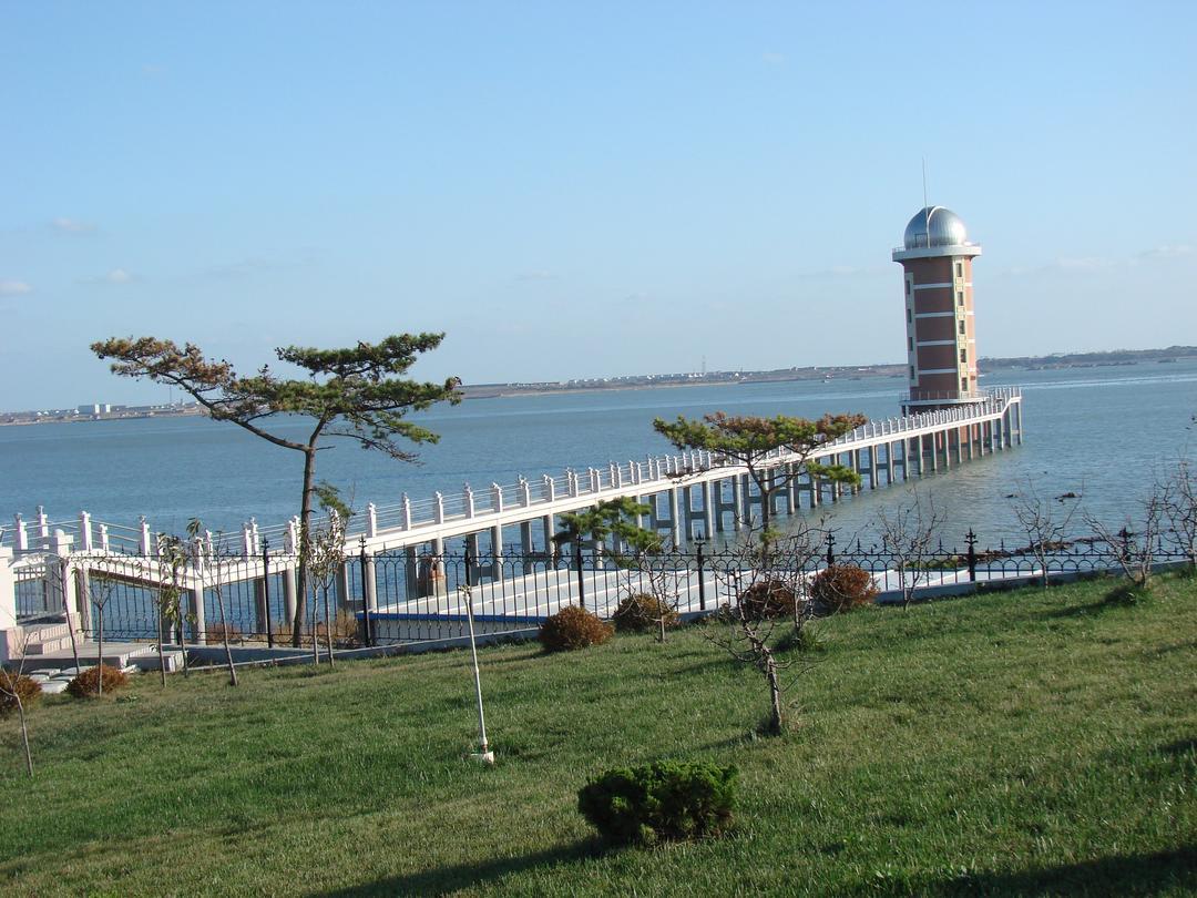 走出办公楼,穿过草木茵茵的大院,再走过267米长的栈桥,便是矗立在海中的太阳观测塔。
