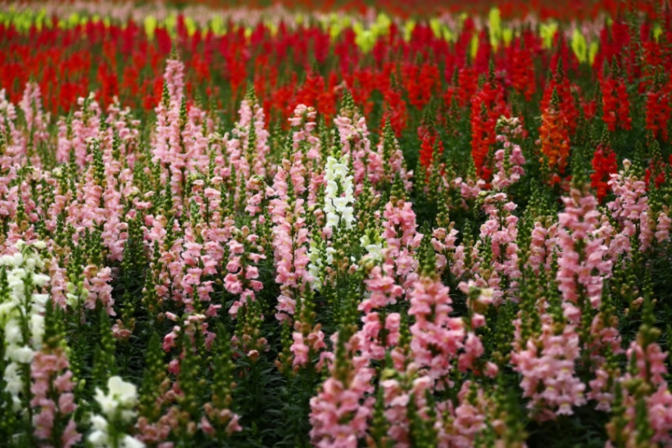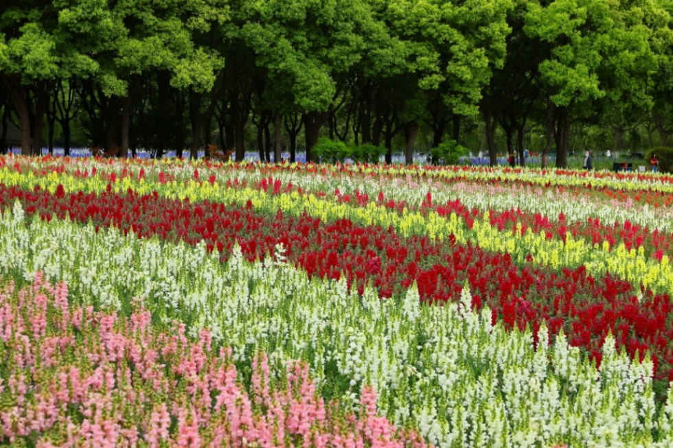 在世纪公园乡土田园区,10000平方米彩色金鱼草灿烂盛开,各种颜色花儿在阳光下怒放,延绵成花的海洋,如彩虹般绚烂,让人流连忘返。花海由一朵朵犹如金鱼嘴巴的小花组成,一串串地挂在花茎上,俏皮而美丽,一阵风吹过,仿佛成千上万条金鱼在花海中自由游动,翩跹起舞,让人感受到来自大自然的瑰丽风采。