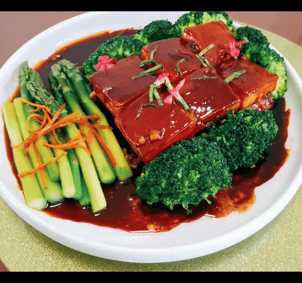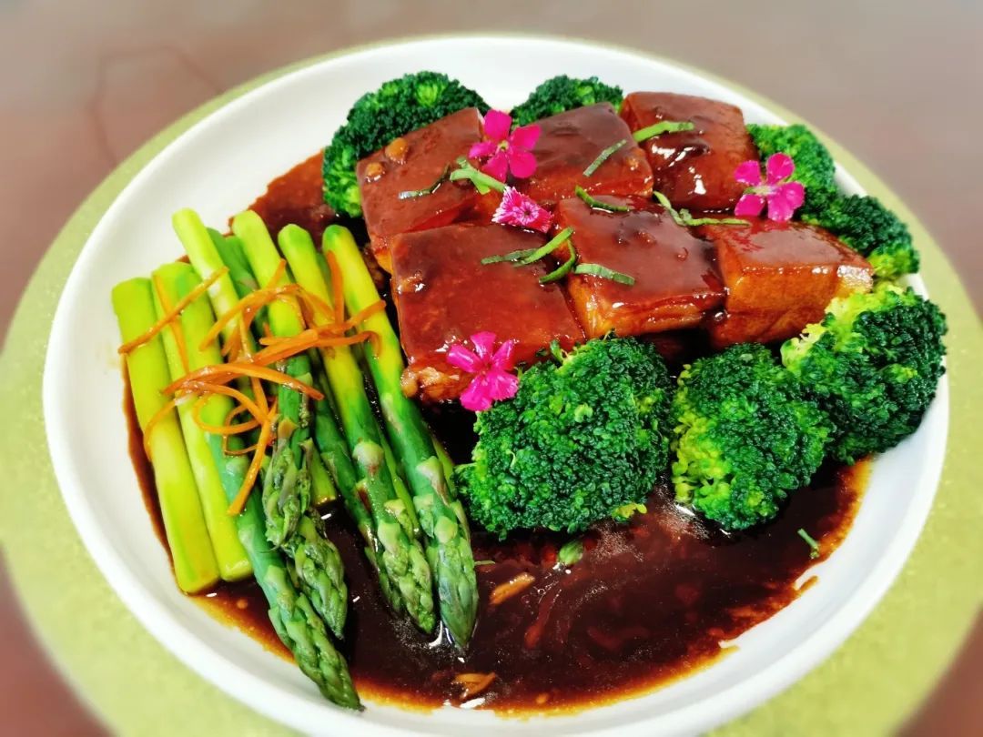 一道色香味俱全的芦笋东坡肉就完成啦!居有竹,食有肉,吃了这道菜好似也能感受苏轼浪漫的情怀了!