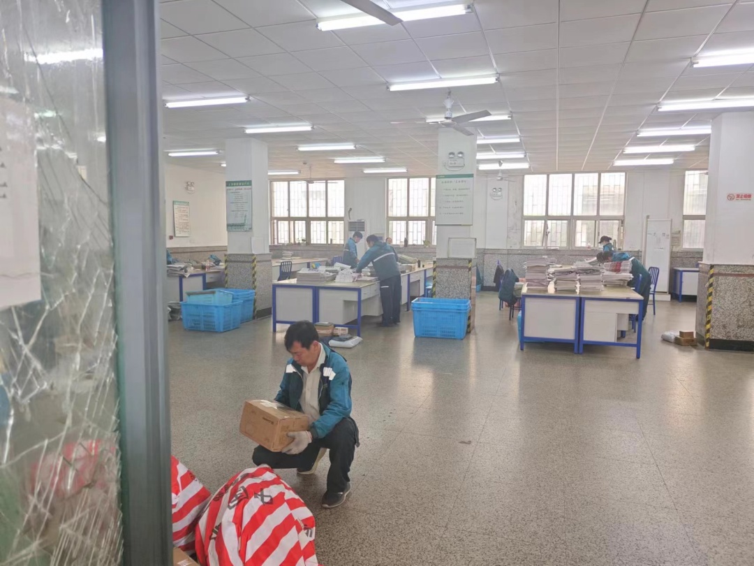 同时,营业人员严格按照“摸、抖、问、看、嗅”五字方针,进行邮件内件的验视工作,并使用节能瘦身胶带对邮件(一字、井字、十字)进行打包,全程眼同封装后封发出口,提供全环节一体化服务,杜绝过度包装与二次包装。