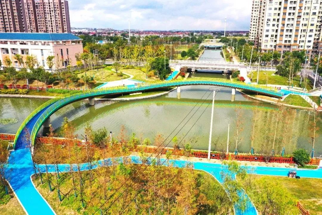 这两年,惠南镇以生态清洁小流域建设为契机,以“田园诗画·乐活惠南·多彩绿环”的设计概念,以北三灶港、三灶路沟及浦东运河围合区域为试点,通过滨河步道贯通构建“环城水系公园”,使城镇、河道绿地的分界相互契合渗透,在城镇中再现“碧水绕城”。