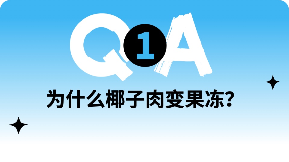 这是一种天生变异的椰子品种。它的果肉不是普通椰子的那种坚硬质地,而是柔软、像果冻一样。