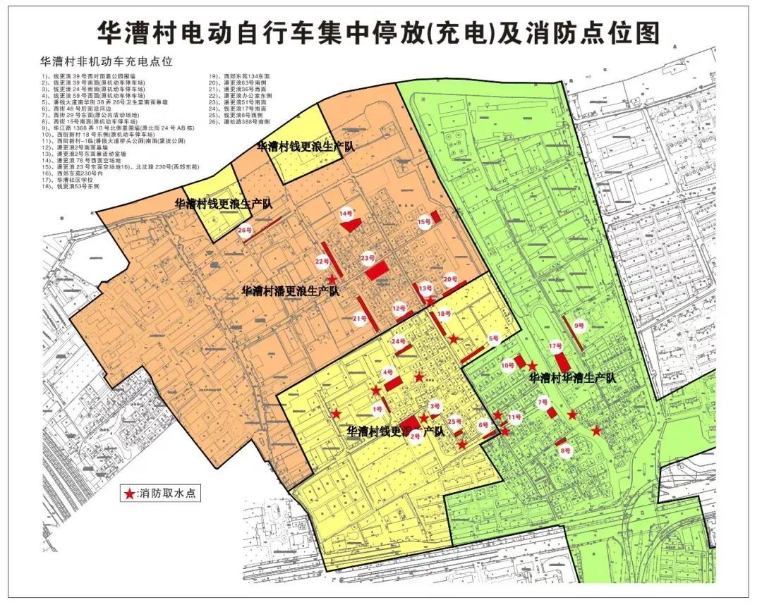 电动自行车是华漕镇华漕村里普遍使用的出行方式。在电动自行车充电点的墙上,还挂着一张醒目的消防地图。图上标注着村内包括4处新建,共26处电动自行车充电点位和13处消防取水点,“有了这张图,村民去哪里充电,突发火灾去哪里就近取水都一目了然。”华漕村相关负责人介绍。