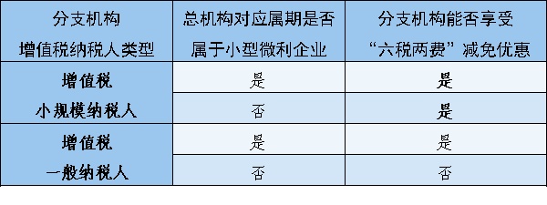 所以,企业所属各个不具有法人资格的分支机构,登记为增值税一般纳税人的,应当根据总机构是否属于小型微利企业来判别能否申报享受“六税两费”减半优惠。