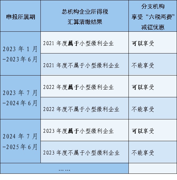 也就是说,如果分支机构是增值税小规模纳税人的,那可以直接按照增值税小规模纳税人享受“六税两费”减半征收优惠;如果分支机构是增值税一般纳税人的,则需要根据其总机构的小型微利企业状况来判断该分支机构能否按照小型微利企业享受“六税两费”减半优惠。