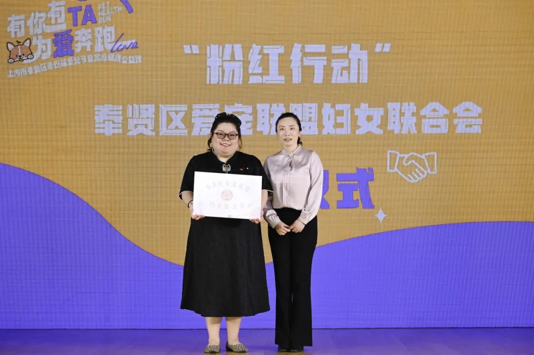 活动现场为奉贤区爱宠联盟妇女联合会主席王熠帆授牌。