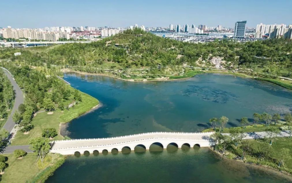十一孔桥全长约75米,以传统中式园林石拱桥为基础,融入现代建造工艺。它与双子山山峰起伏呼应,成为景观焦点。