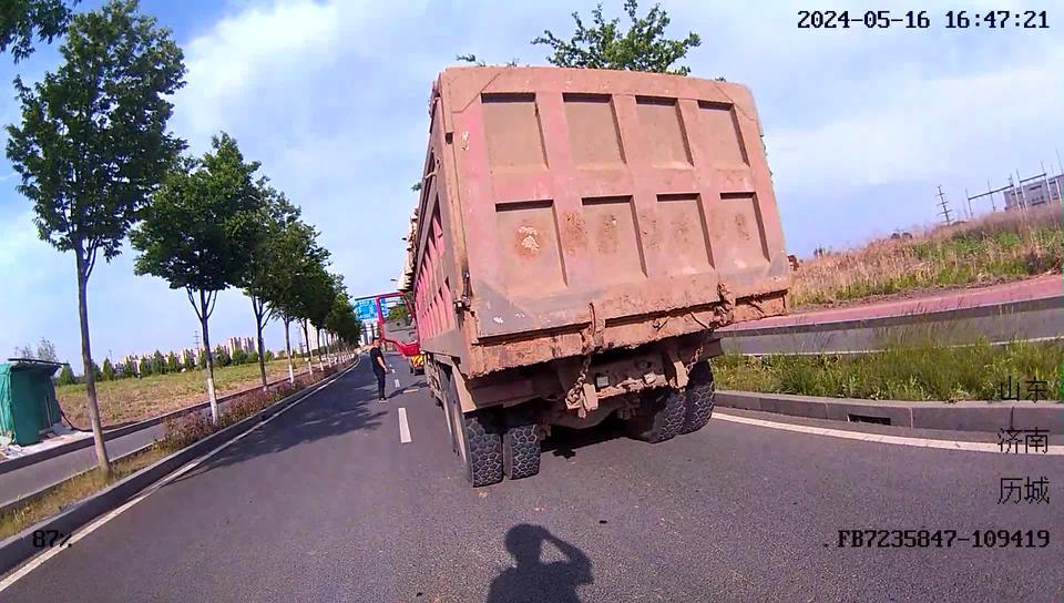 近日,济南市公安局交警支队历城区大队民警在望华南街巡逻时,发现一渣土车后放大车牌被泥土糊住,后车牌也不复存在,在后车牌位置的左边还加装了一个射灯,遂上前示意其靠边停车、接受检查。