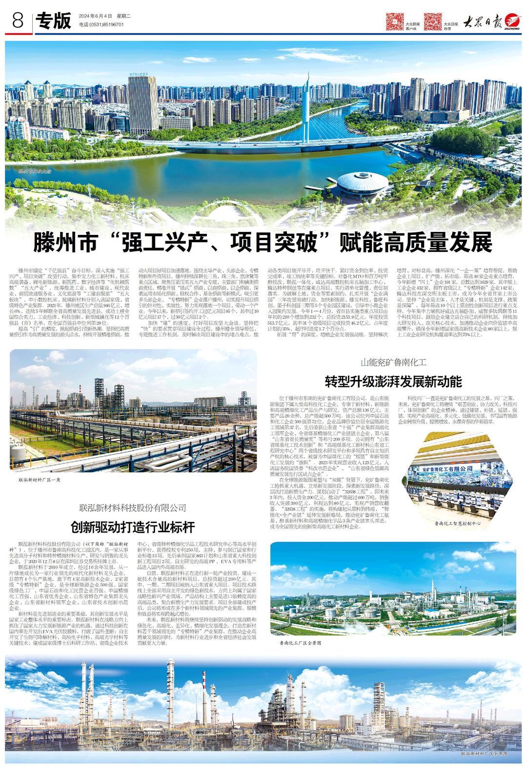 6月4日出版的大众日报刊发滕州市高质量发展特刊,其中介绍了山能兖矿鲁南化工有限公司转型升级。全文如下:
