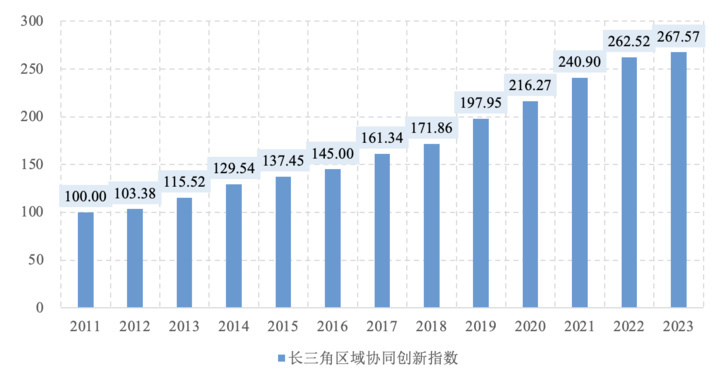 报告显示,长三角区域协同创新指数从2011年的100分增长至2023年的267.57分,2018年以来,长三角区域协同创新指数年均增幅达9.26%,可见长三角协同创新引领示范作用不断加强,科技创新共同体建设迈向新阶段。