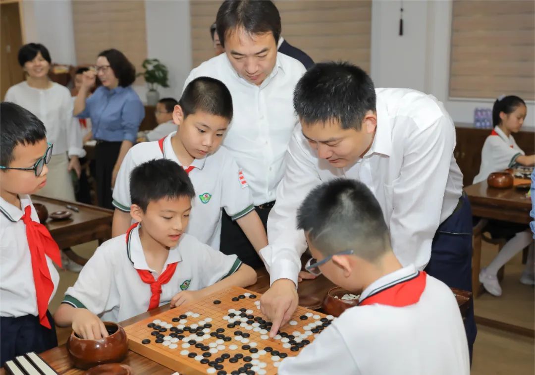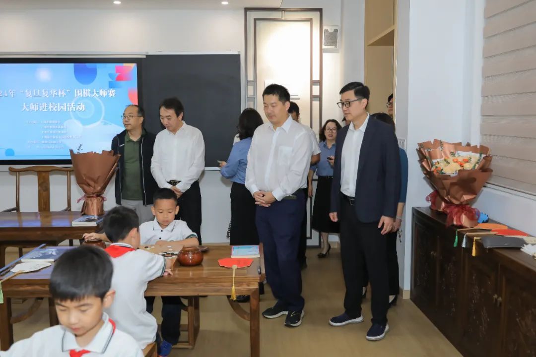 在比赛开始前,常昊与中国围棋协会副秘书长刘菁、上海棋院院长刘世振等大师,共同走进“全国围棋特色学校”——奉贤区实验小学,在围棋课堂中与小棋手们开展互动交流。小棋手们在对弈中的认真专注及精彩表现获得了大师们的一致赞许。“我很期待奉贤今后能够在围棋上,在我们优秀传统文化上,能有更多的作为。”