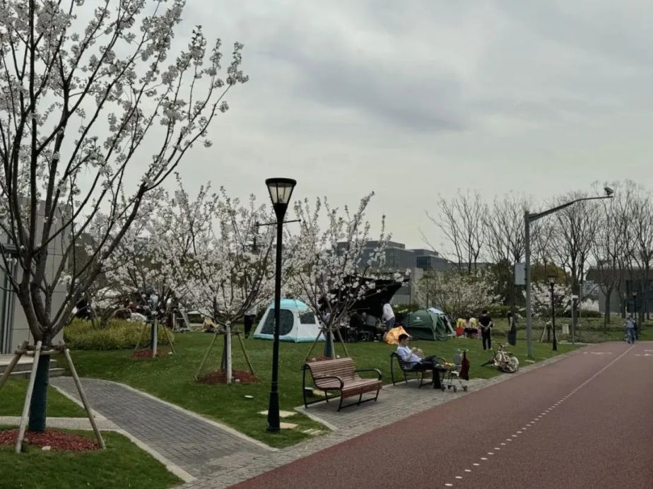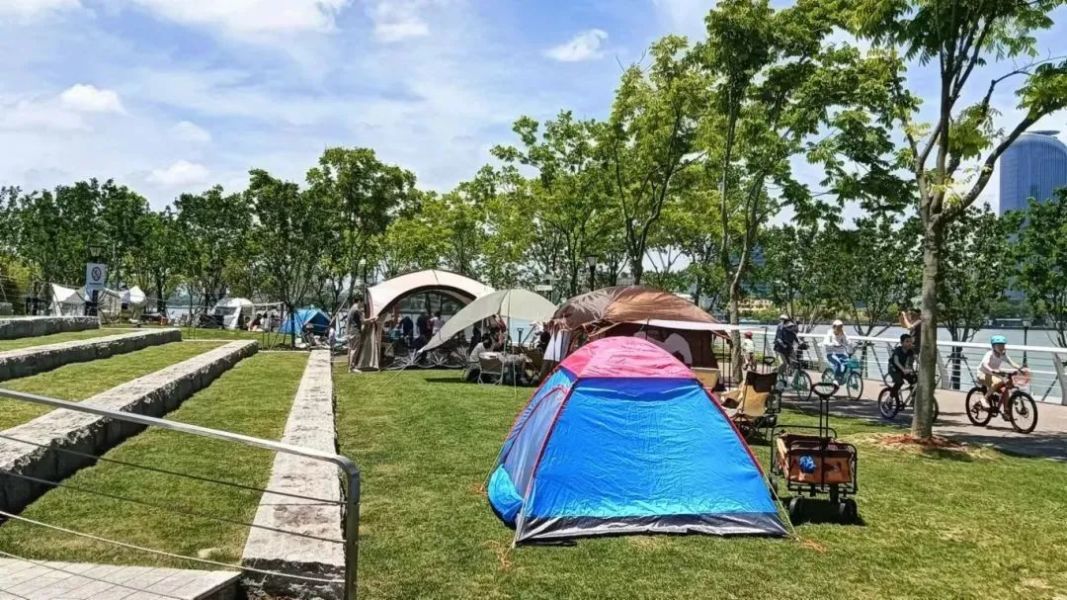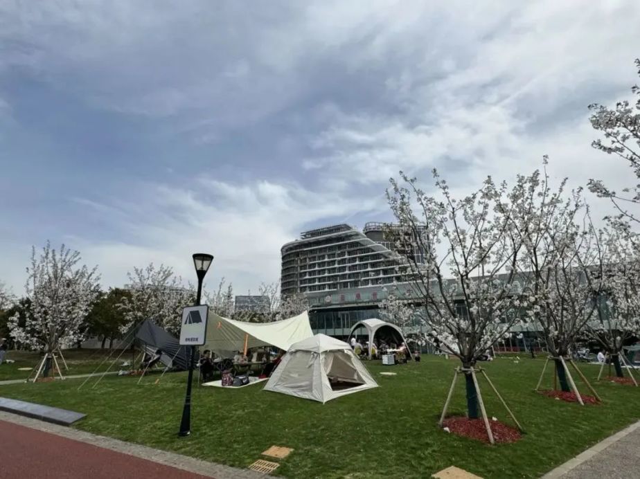多功能草坪的顶上占地约360平方米,是搭帐篷的胜地。周末这里常常搭满天幕帐篷,三五好友相聚,享受难得的悠闲时光。