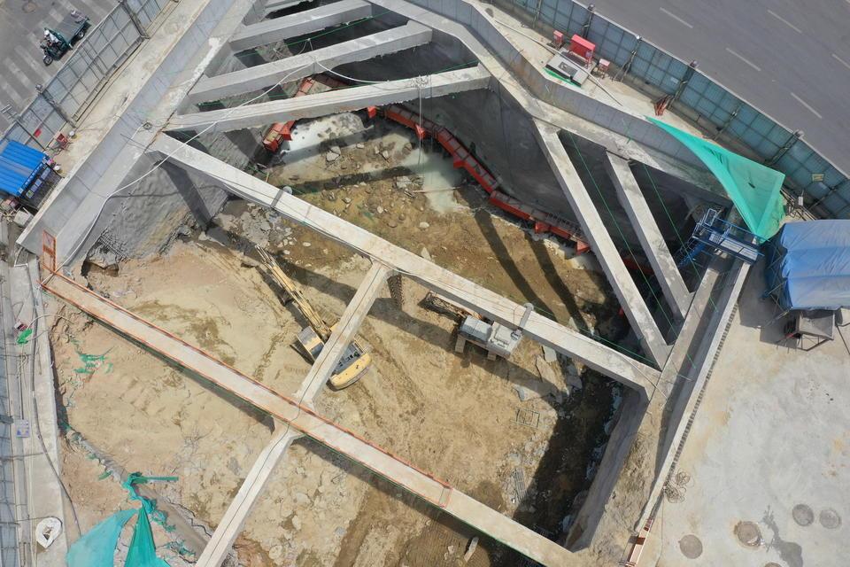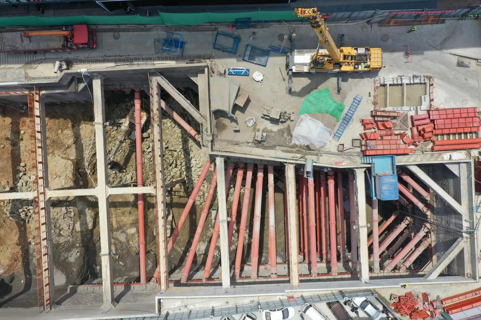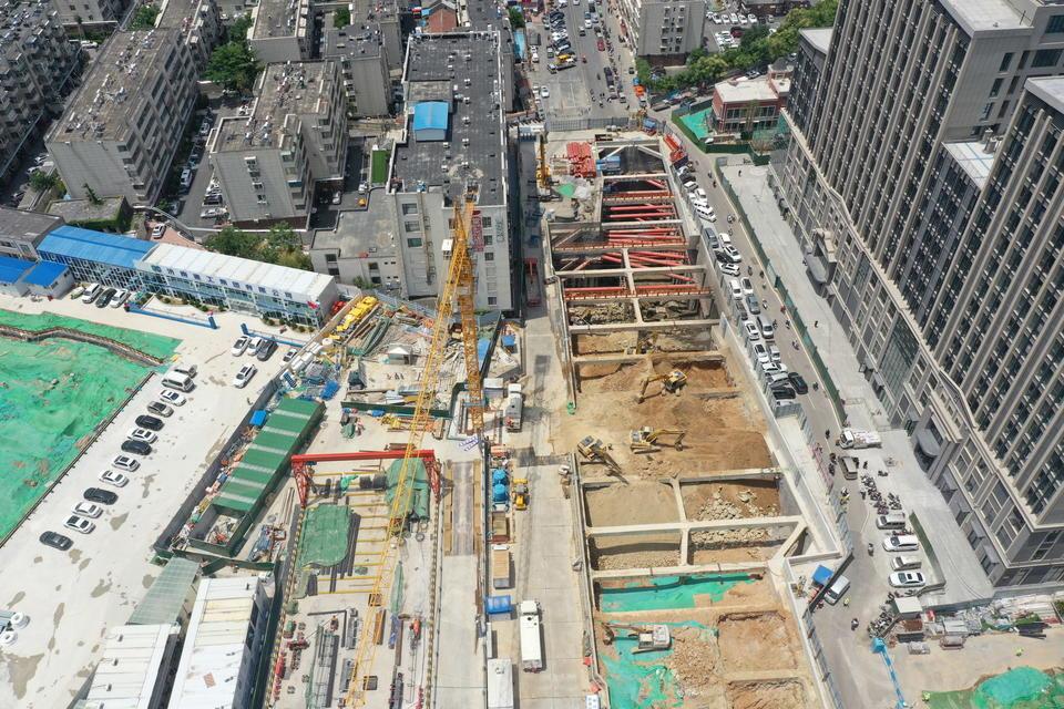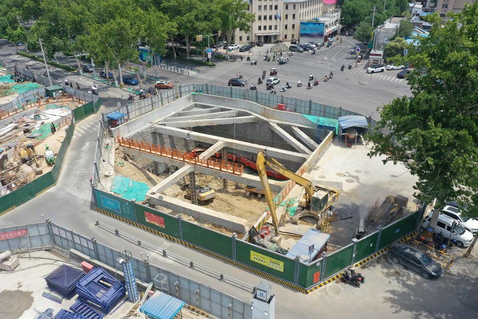 端午假日,济南历山路、山大南路路口,地铁6号线东仓站工地一片繁忙。