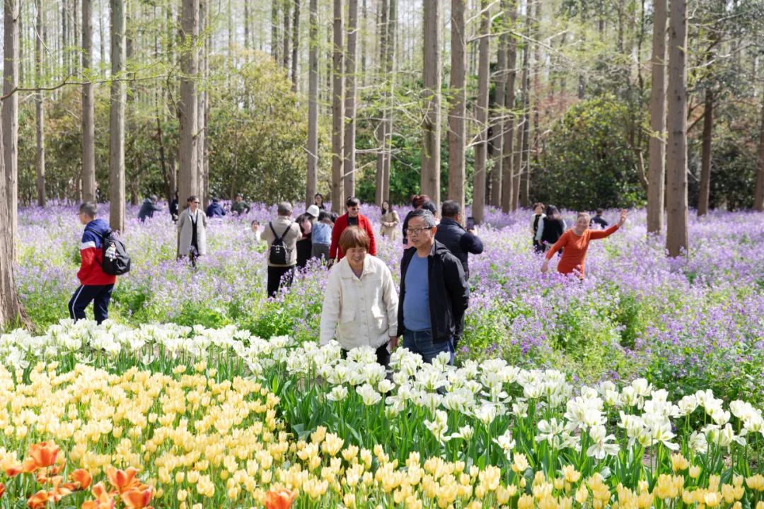 这几年,多元化植物的种植以及生态资源的合理开发利用,丰富了园内植物的生态多样性。千米紫藤长廊、百樱林、花径小溪等景观小品依势而建,兰园、菊园、五彩水仙厅拔地而起,崇明本地特色花卉点缀其中……呈现出 “一溪、多园、百樱、千紫、万林”的景观,植物色彩随着季节更迭变化多样,构成了层次丰富、生态效应良好的复合型生态空间,处处为景、步步生情。