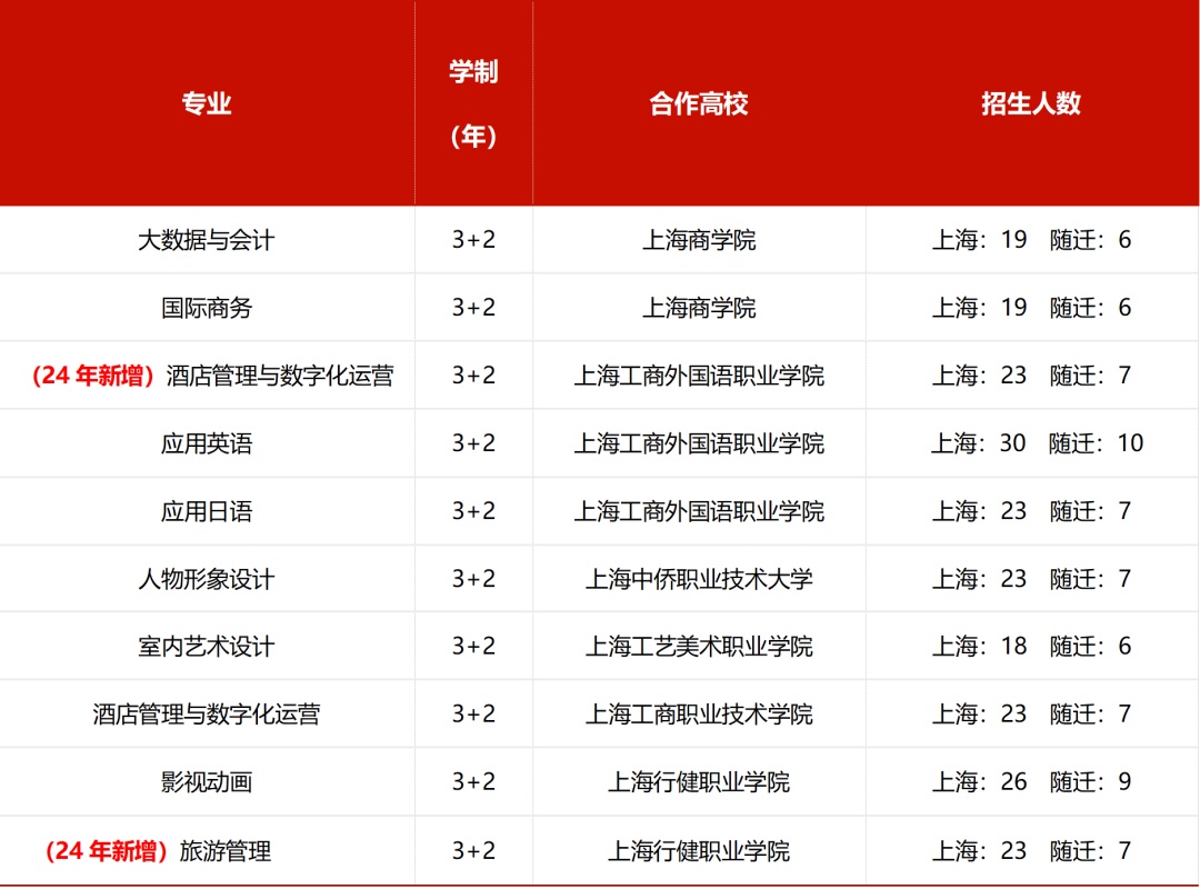 注:以上招生专业以2024年上海市教委公布的正式招生专业目录为准。