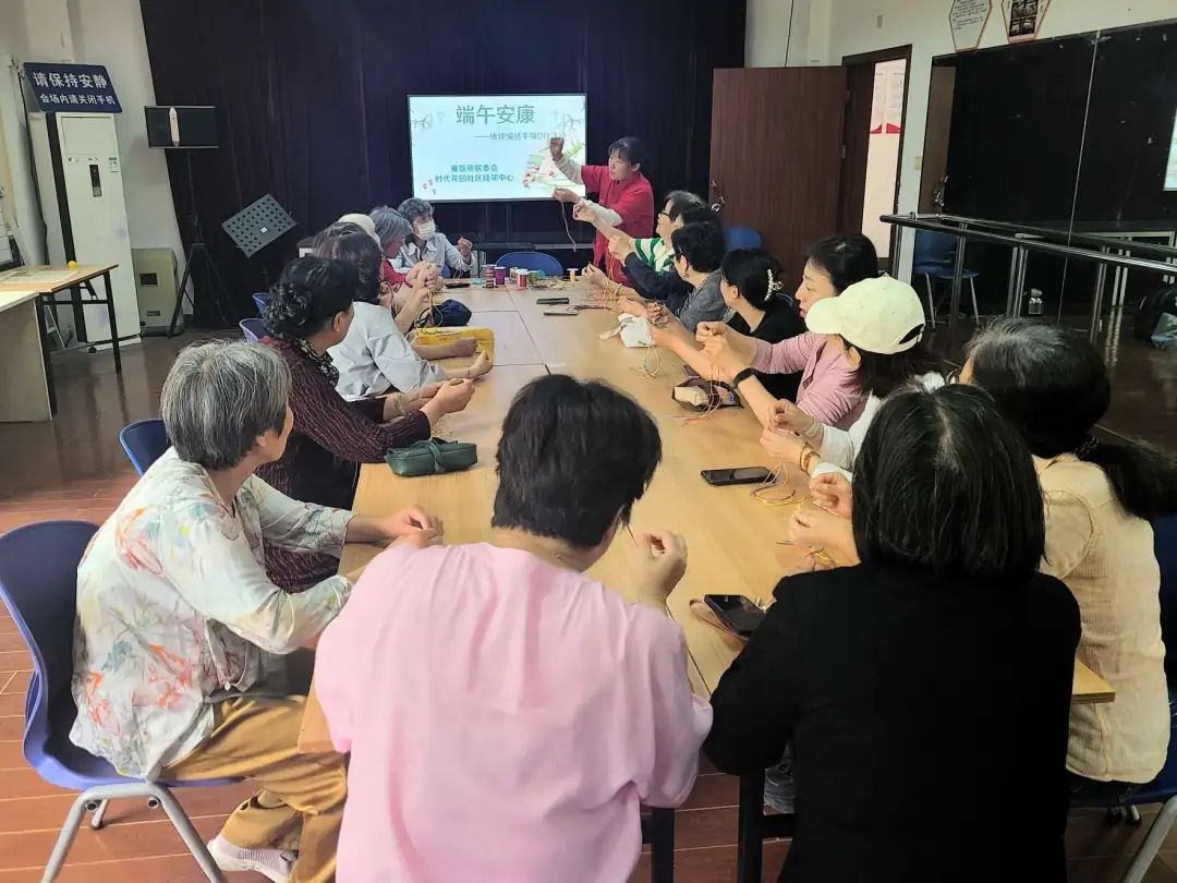 在街道时代花园社区睦邻中心,一场传统手绳编结活动热闹开展。专业技艺师傅展示了手绳编结的基本技巧和方法,只见五彩斑斓的绳子在手中翻飞,不一会儿就变成了精美的手绳。