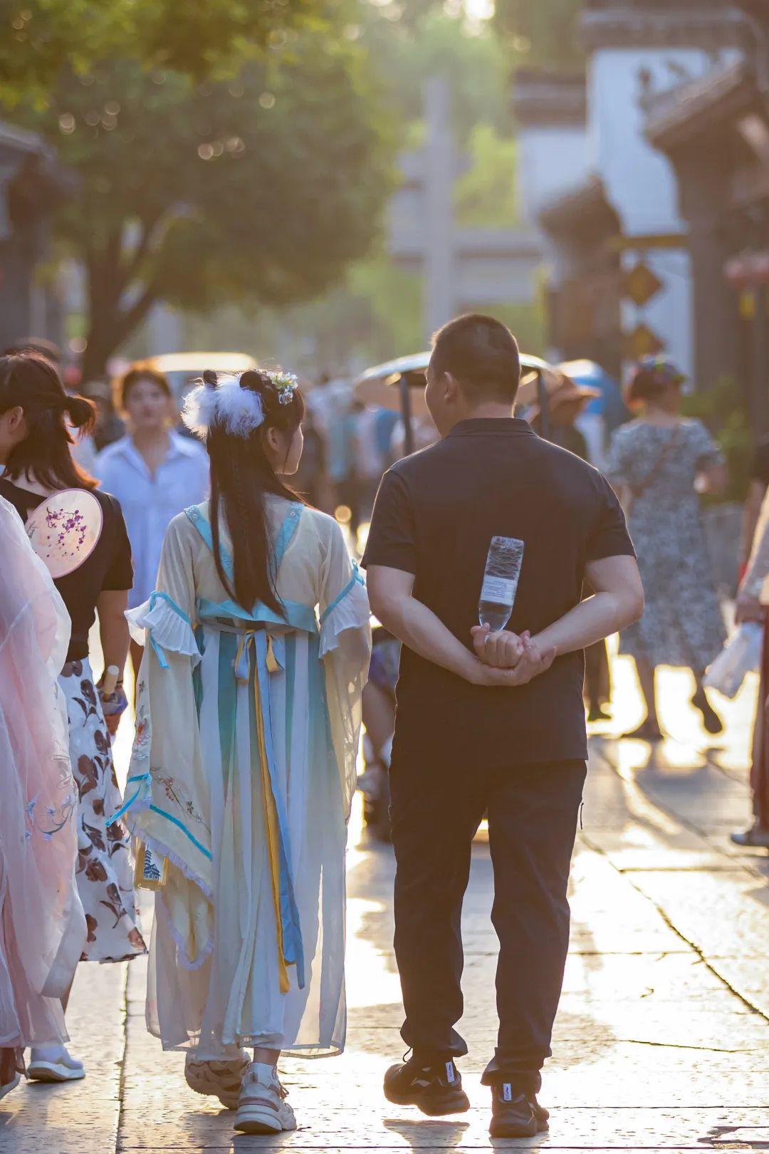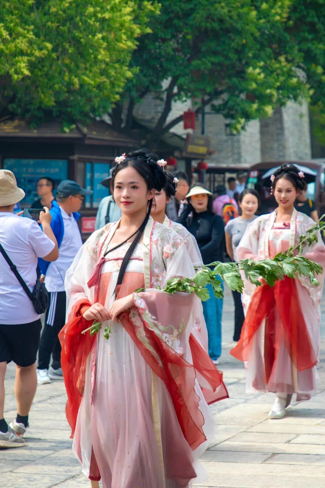 温馨的画面在景区内不断上演,家庭团聚共度端午,散发着浓浓的亲情和温暖。游客们漫游古城,欣赏美景,路过茶行,歇歇脚、喝喝茶、看看演出,别有一番风味。