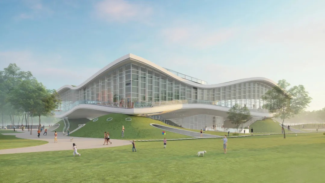 值得一提的是,本次活动的举办地是“上海之鱼”内即将建成的奉贤新城文化新地标“在水一方”。建筑形态优美,一层如起伏的山谷,二层如轻柔的云彩,在湖水的掩映下轻盈而通透。建成后,这里将成为全国首座沉浸体验型科幻馆,以中国视角全面感受东方科幻想象中的未来世界。