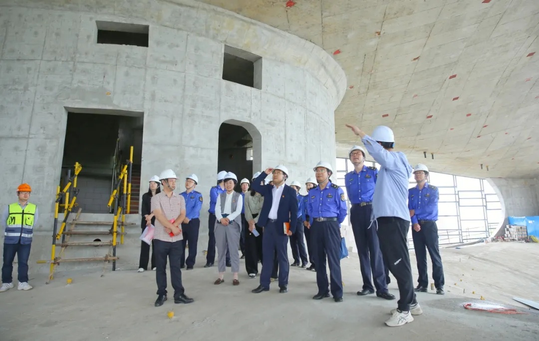 双方党员、团员青年代表共同走进在建项目工地,参观“在水一方”科幻馆建设情况。