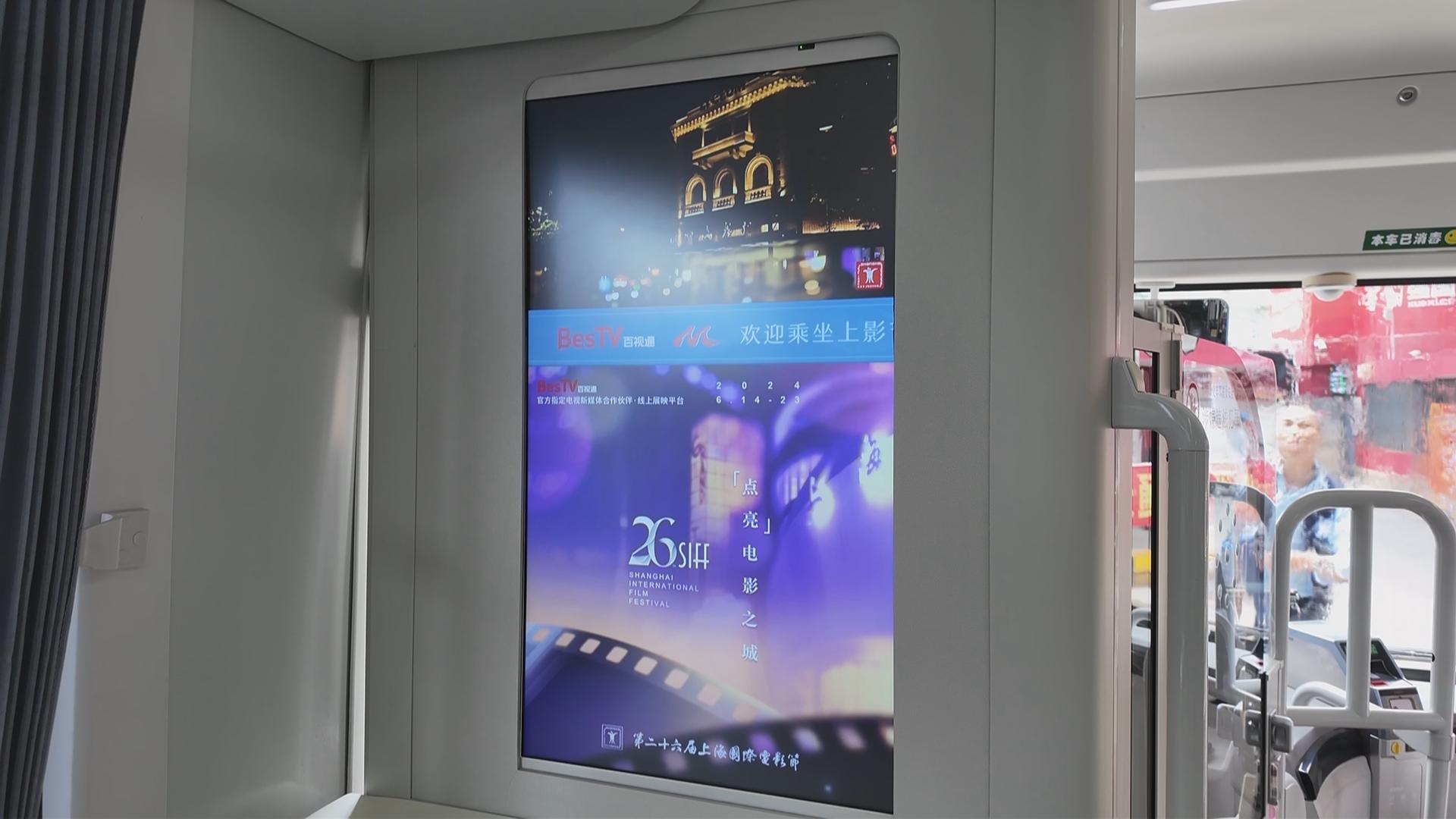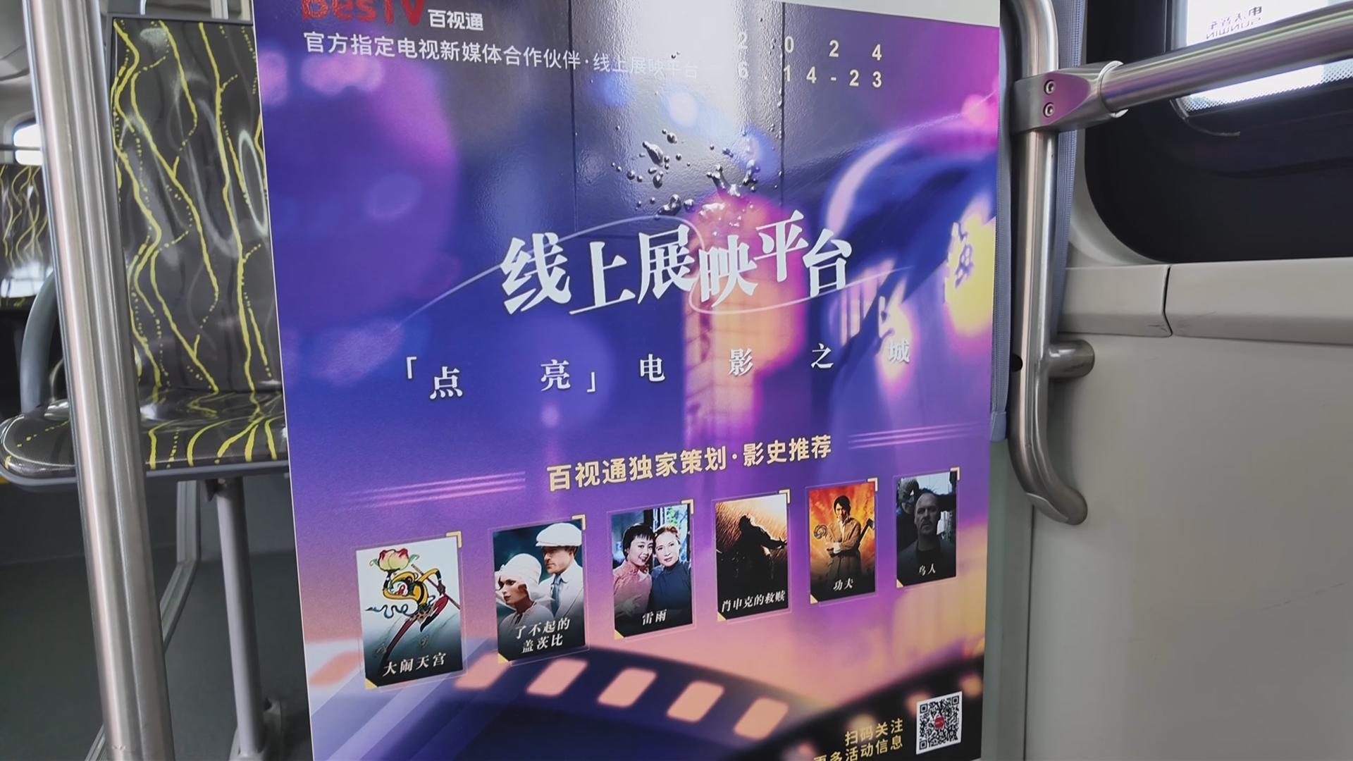 市民刘小姐兴奋地表示:“作为一位电影爱好者,我购买了多场电影票,期待能够亲自前往各个影院感受不同的观影氛围。听说这次上海公交车还推出了专门的电影节专线,我非常兴奋。今天特地来体验一下,果然非常棒!车厢内布置得很有氛围,大屏幕播放的宣传片也很精彩。希望能在车上结识更多志同道合的朋友,以后一起打卡更多影院。”