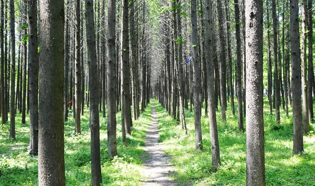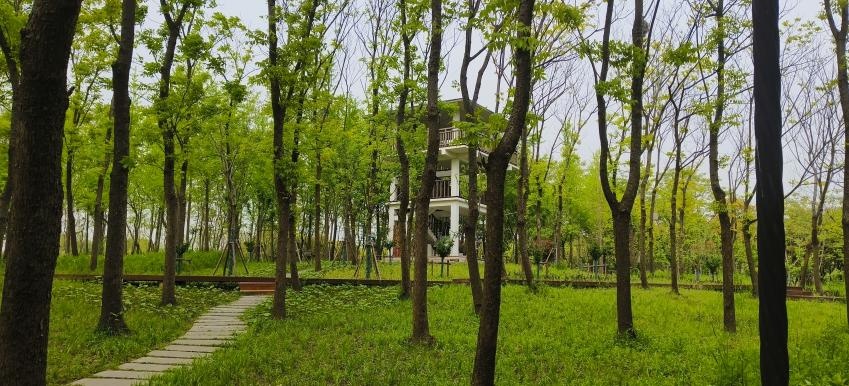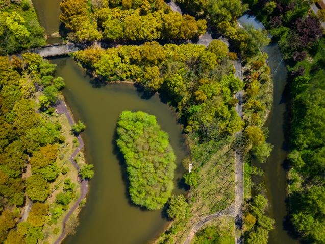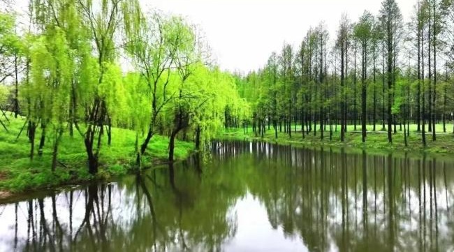 林内植被以水杉为主,苍翠浓密的水杉冲天而立,林间小径幽深静谧,河水清澈见底,随处可见的小溪湿地,在这里可以卸去都市的忙碌与浮躁,尽情体验每一度自然能量。