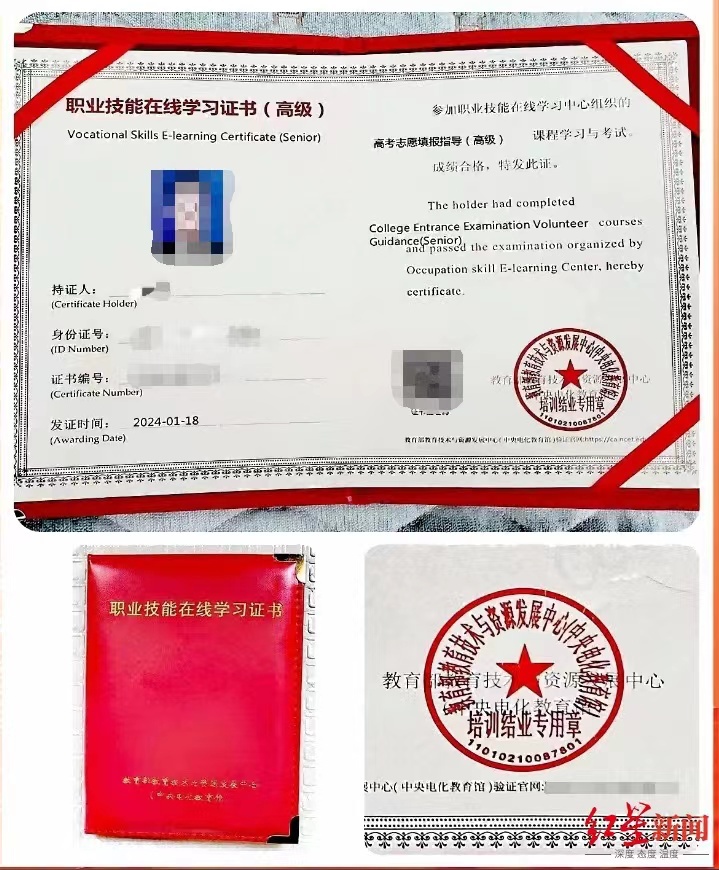 一家培训机构表示,“0基础、0门槛,从0起步学习掌握高考报考”,只需要21课时,每课1.5小时,“21天成为高考规划师”,获得教育部官方颁发的证书,并提供证书盖章为教育部教育技术与资源发展中心培训结业专用章。培训费用原价3680元,限时优惠价格只要1680元。“培训后可以入驻平台,免费使用高考报考大数据,平台推荐客户。”