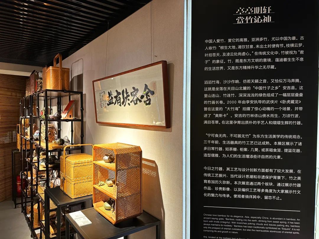 令竹馆的竹子来自2000公里以外的云南省昭通市大关县。那里是中国有名的中国筇竹之乡。大关县现有筇竹面积达102万亩,占世界筇竹面积的70%以上,年产竹竿超亿根。茂密纵深的竹海,在独特的乌蒙山区气候孕育下,生产出了筇竹密度高、竹节美、壁厚匀。每一件筇竹产品,又经过了防霉、防蛀、防裂、调直、塑形、组装、打磨、上色、搽漆等32道工序,才使竹艺产品呈现出如此醇厚的质感和迷人的色彩。