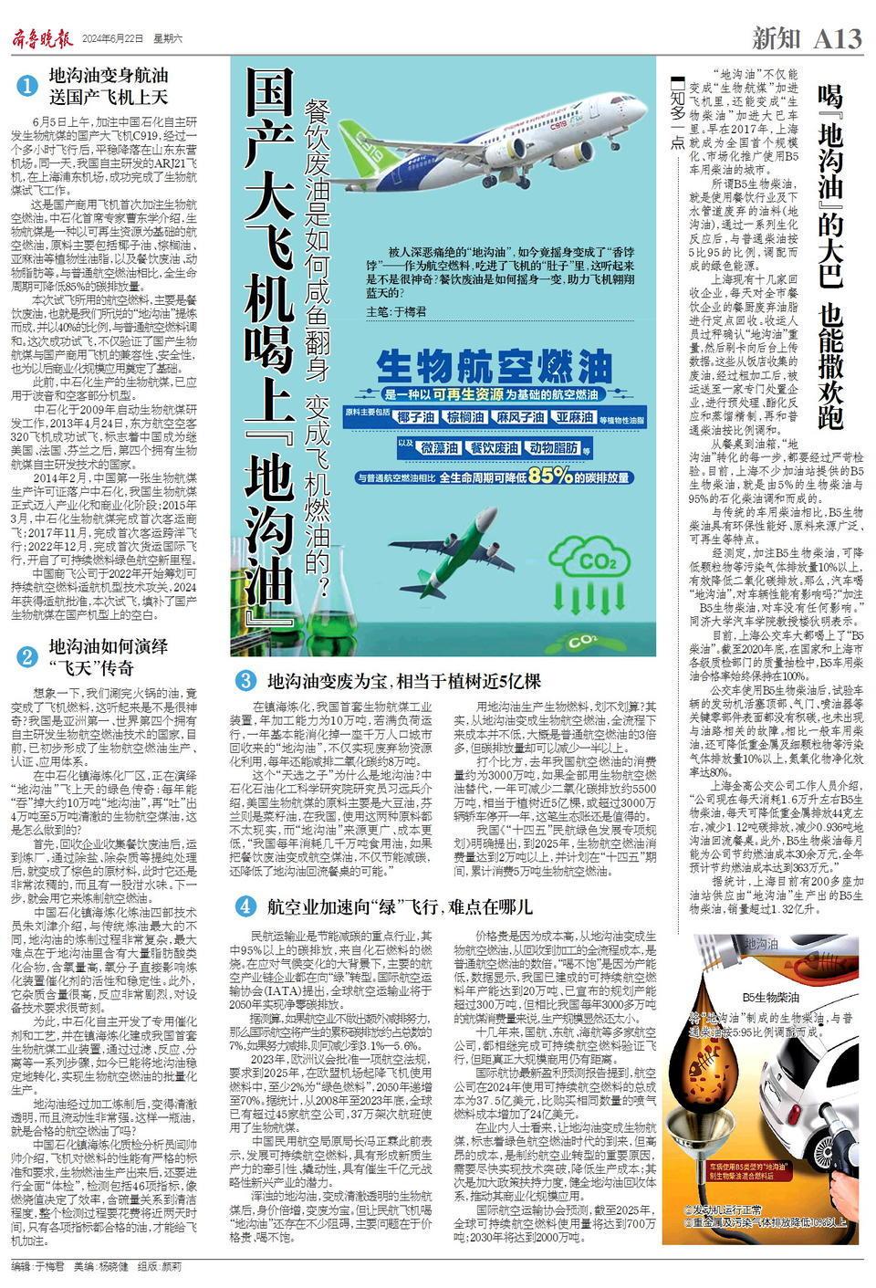 地沟油变燃料,送国产商用飞机上天